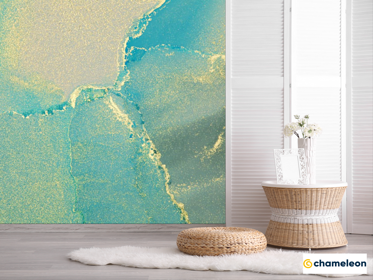 Фотошпалери «Фотошпалери Бірюзовий fluid art з золотом», (арт. 30446) - купити в інтернет-магазині «Будинок Фотошпалер» Хамелеон