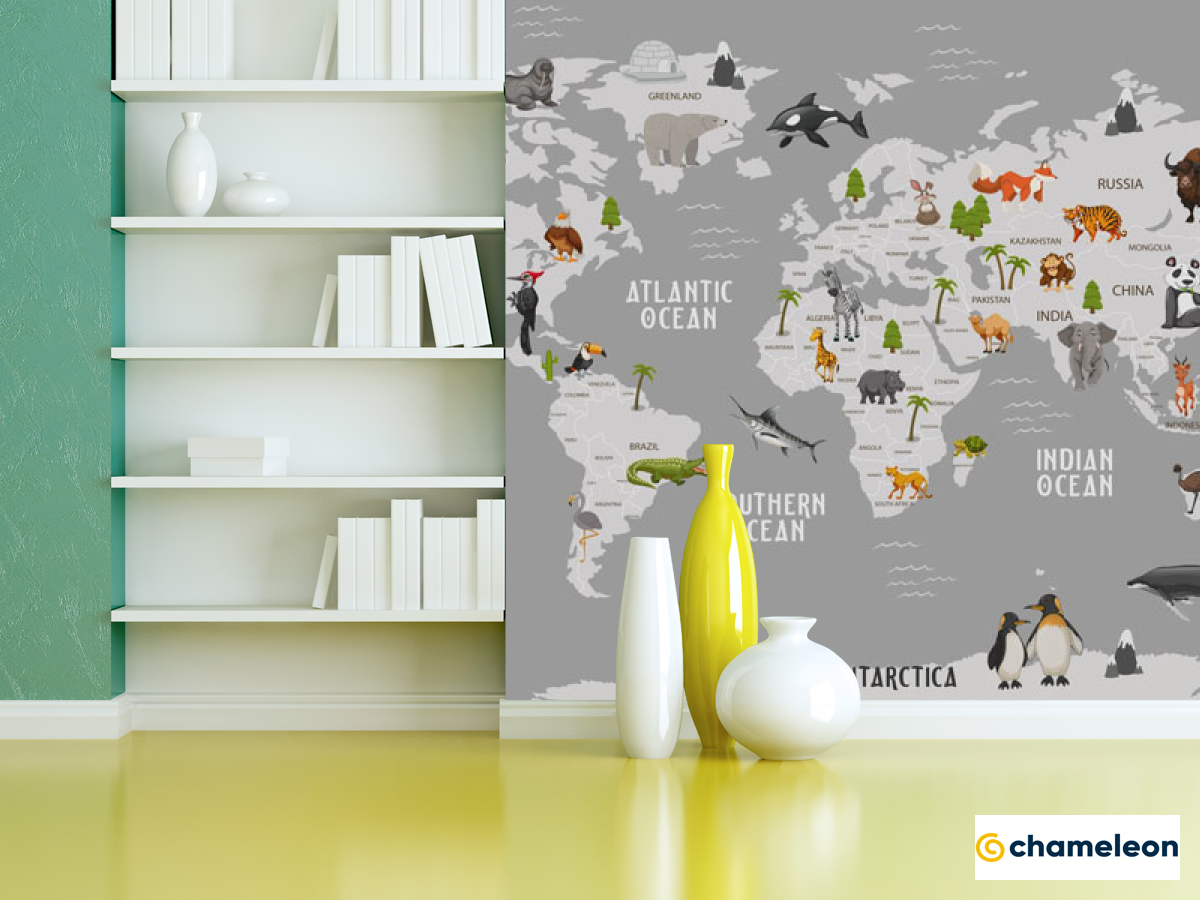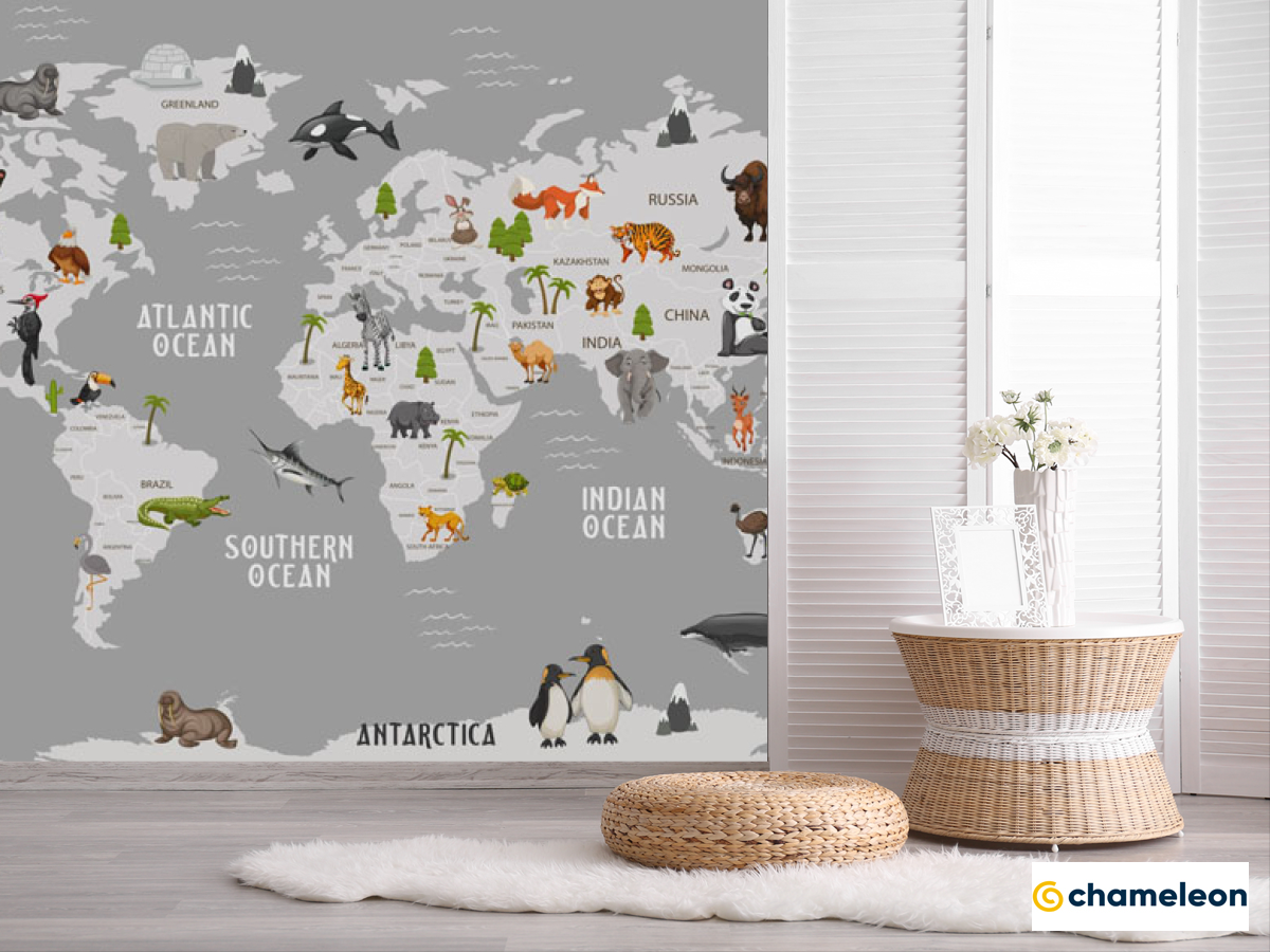 Фотошпалери «Фотошпалери сіра карта з тваринами», (арт. 30581) - купити в інтернет-магазині «Будинок Фотошпалер» Хамелеон