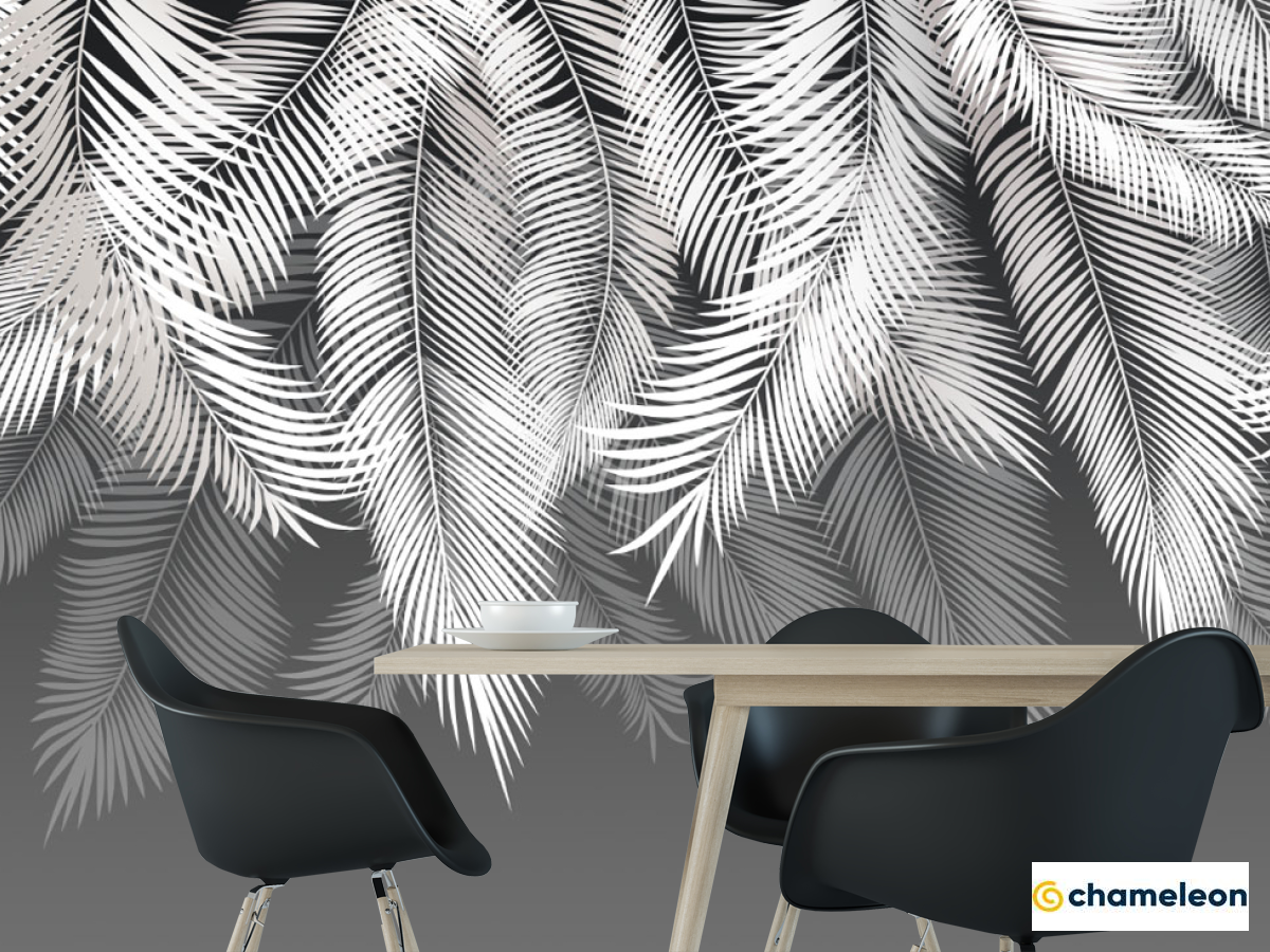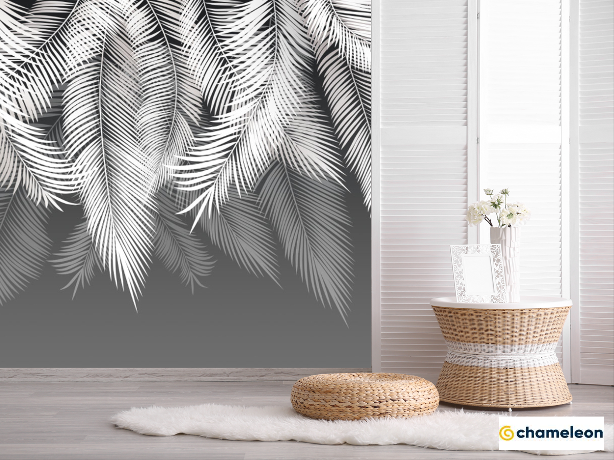 Фотошпалери білі листя пальми