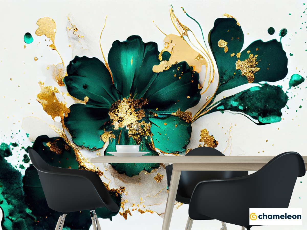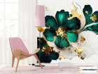Фотошпалери зелені квіти з золотом