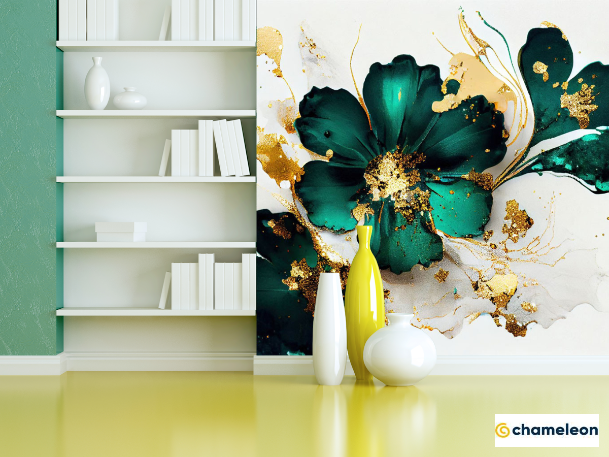 Фотошпалери «Фотошпалери зелені квіти з золотом», (арт. 31867g) - купити в інтернет-магазині «Будинок Фотошпалер» Хамелеон