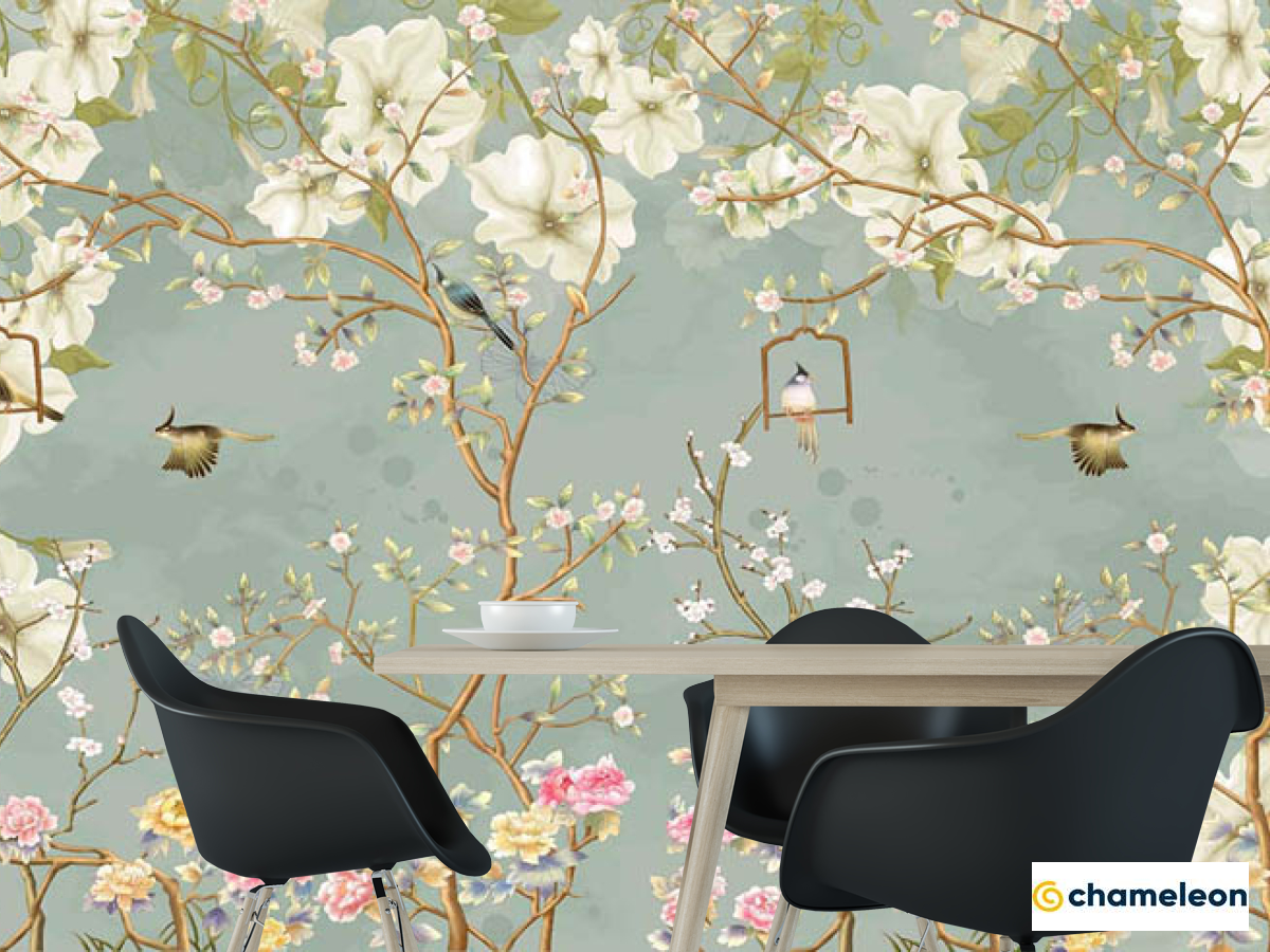 Фотошпалери «Фотошпалери птиці і гілки в японському стилі», (арт. 32507) - купити в інтернет-магазині «Будинок Фотошпалер» Хамелеон