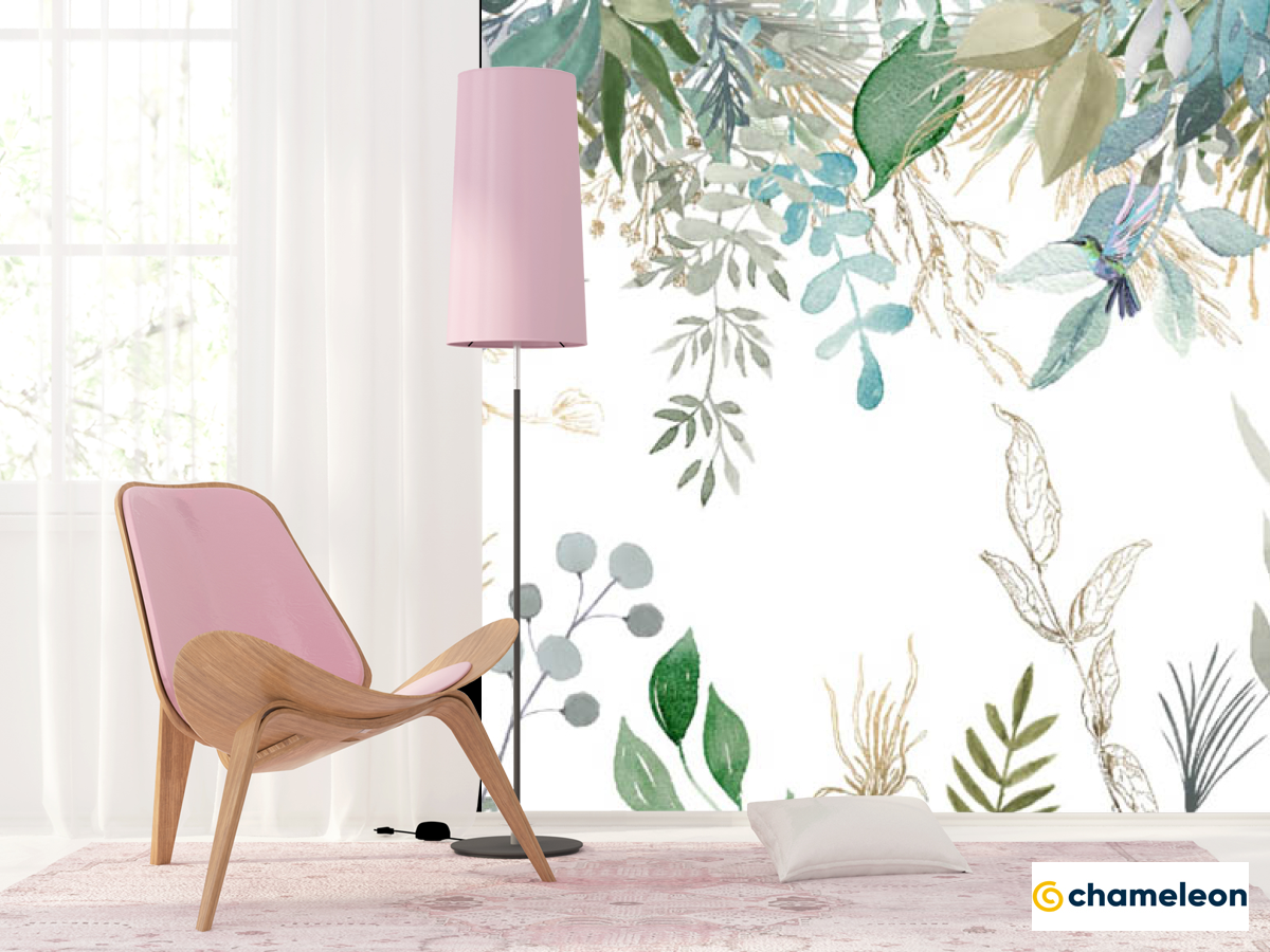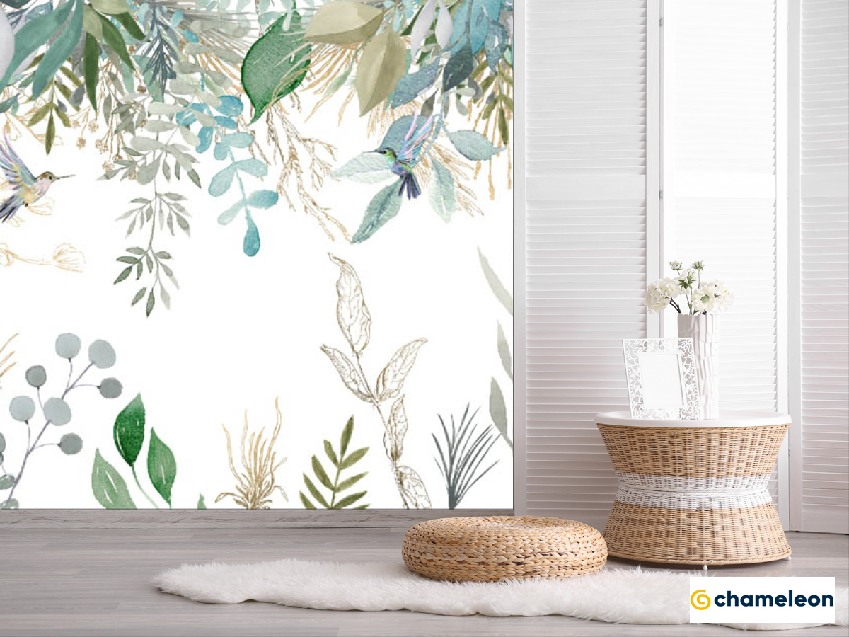 Фотошпалери «Фотошпалери листя птропіческіе і колібрі», (арт. 32969) - купити в інтернет-магазині «Будинок Фотошпалер» Хамелеон