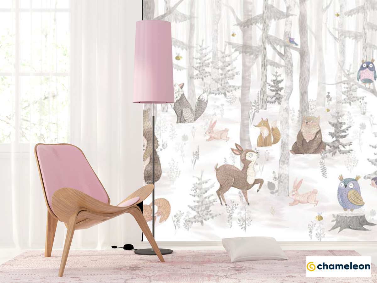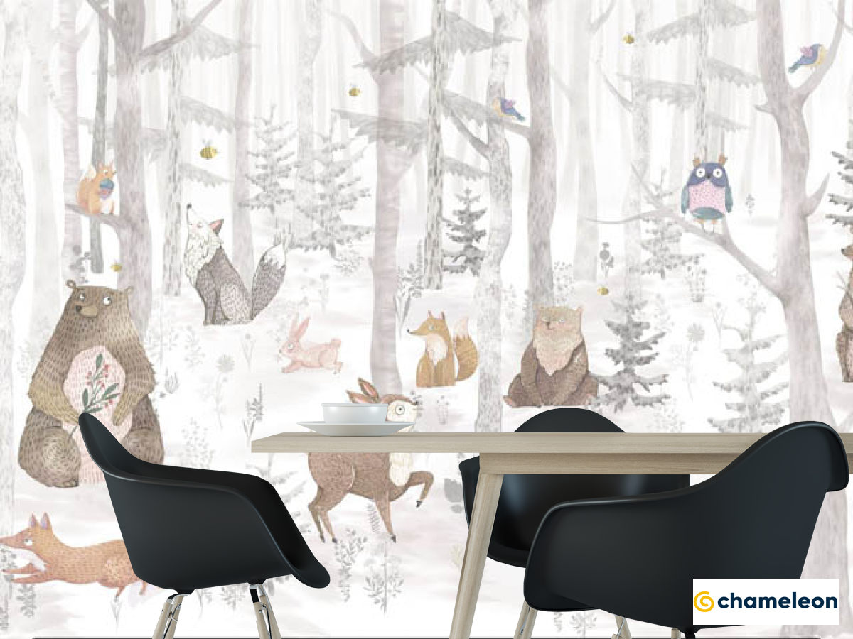 Фотошпалери «Фотошпалери Тварини в лісі мінімалістичні», (арт. 33050) - купити в інтернет-магазині «Будинок Фотошпалер» Хамелеон