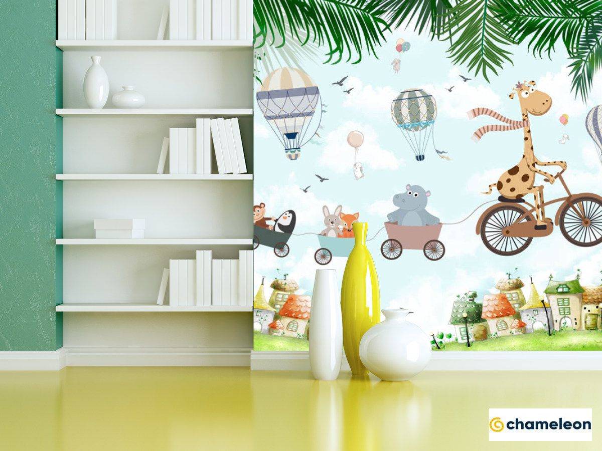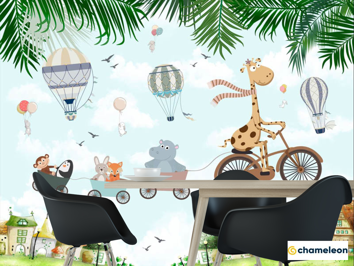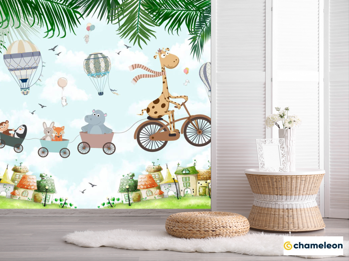 Фотошпалери «Фотошпалери Жирафик і будиночки», (арт. 33062) - купити в інтернет-магазині «Будинок Фотошпалер» Хамелеон