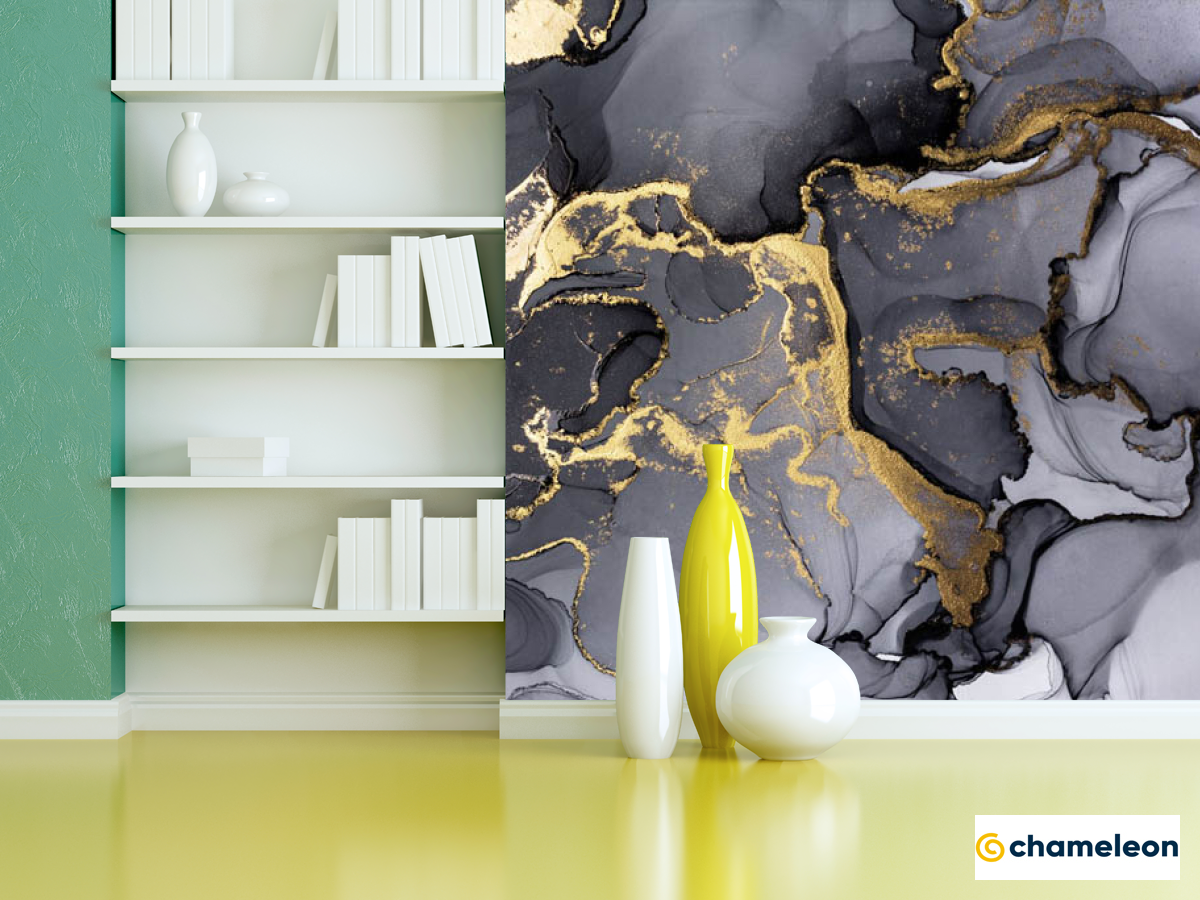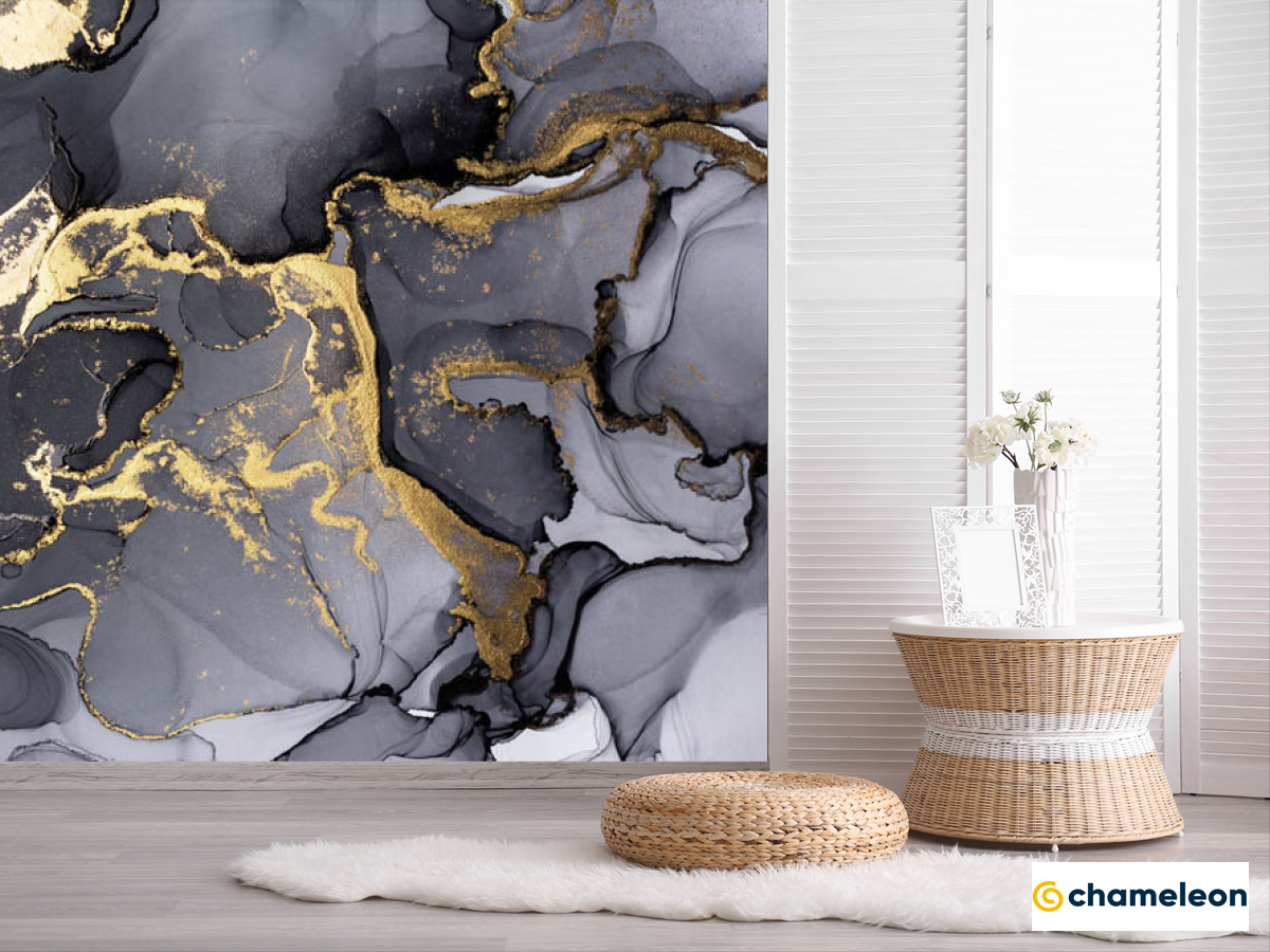 Фотошпалери «Фотошпалери Сірий флюїд з золотом», (арт. 33108) - купити в інтернет-магазині «Будинок Фотошпалер» Хамелеон