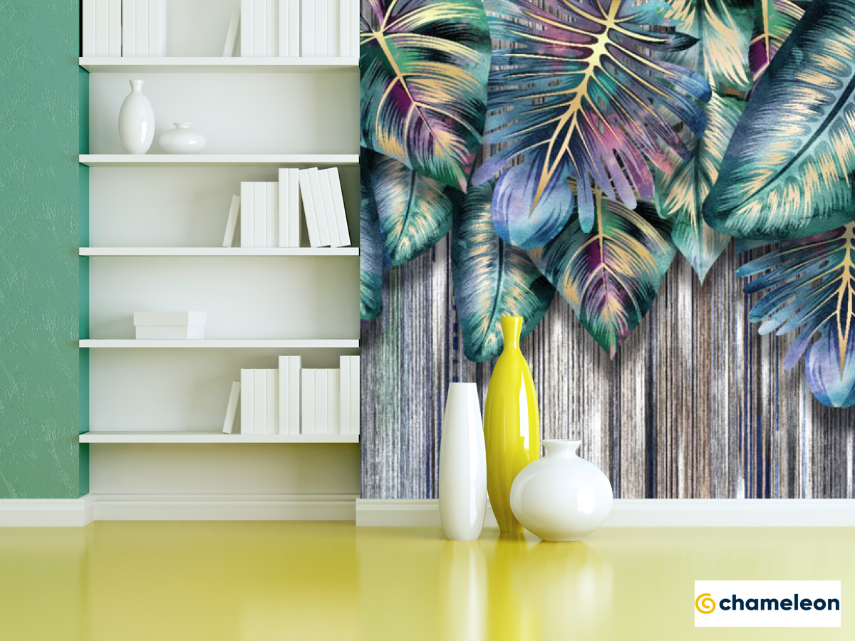 Фотошпалери «Фотошпалери Тропічні листя 3д», (арт. 33186) - купити в інтернет-магазині «Будинок Фотошпалер» Хамелеон