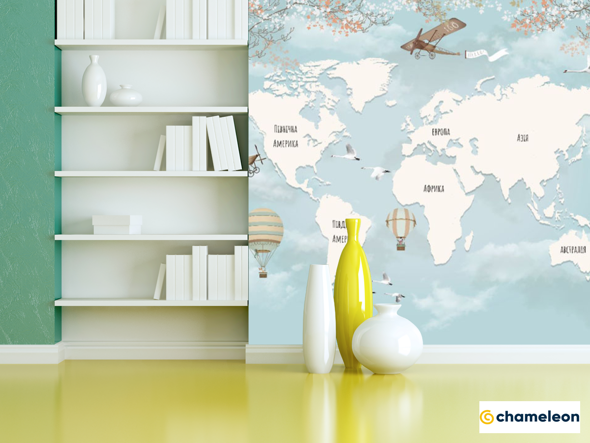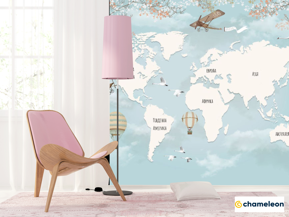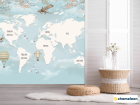Фотошпалери «Фотошпалери Дитяча карта з континентами і гілками в блакитному кольорі.», (арт. 33230) - купити в інтернет-магазині «Будинок Фотошпалер» Хамелеон