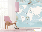 Фотошпалери Дитяча карта з континентами і гілками в блакитному кольорі.