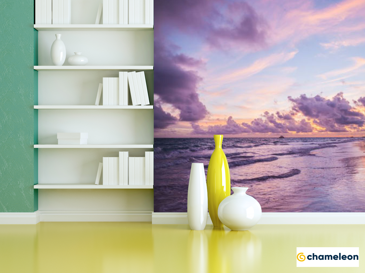 Фотошпалери «Фотошпалери Фіолетовий захід сонця біля моря», (арт. 33798) - купити в інтернет-магазині «Будинок Фотошпалер» Хамелеон