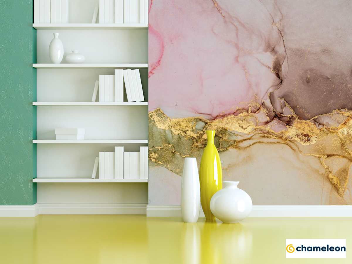 Фотошпалери «Фотошпалери кольоровий флюїд з золотом», (арт. 33812) - купити в інтернет-магазині «Будинок Фотошпалер» Хамелеон