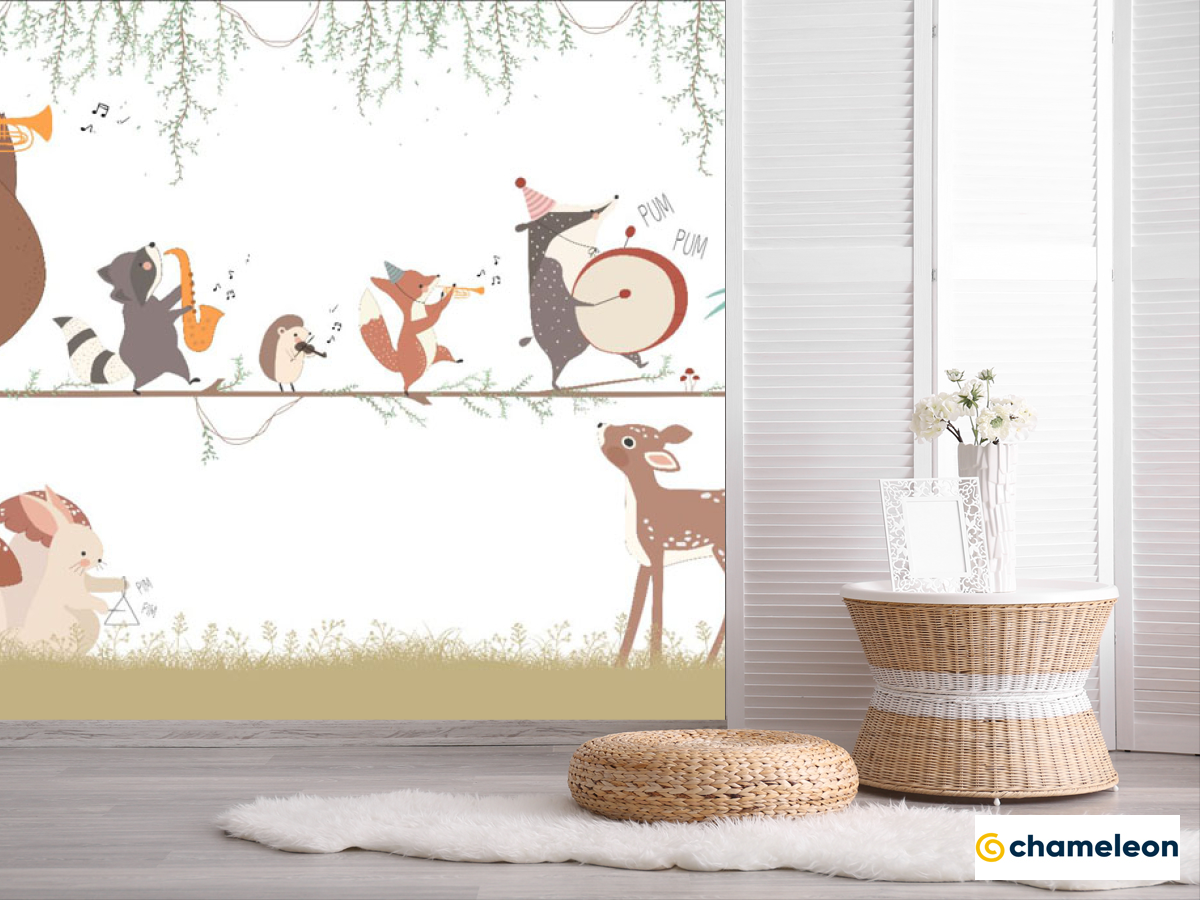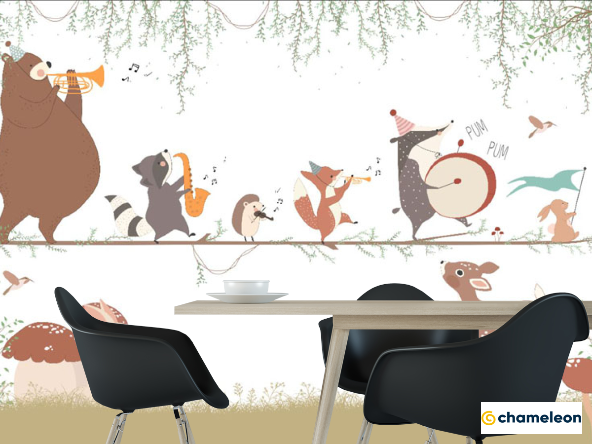 Фотошпалери «Фотошпалери музичний ансамбль з тварин», (арт. 33914) - купити в інтернет-магазині «Будинок Фотошпалер» Хамелеон