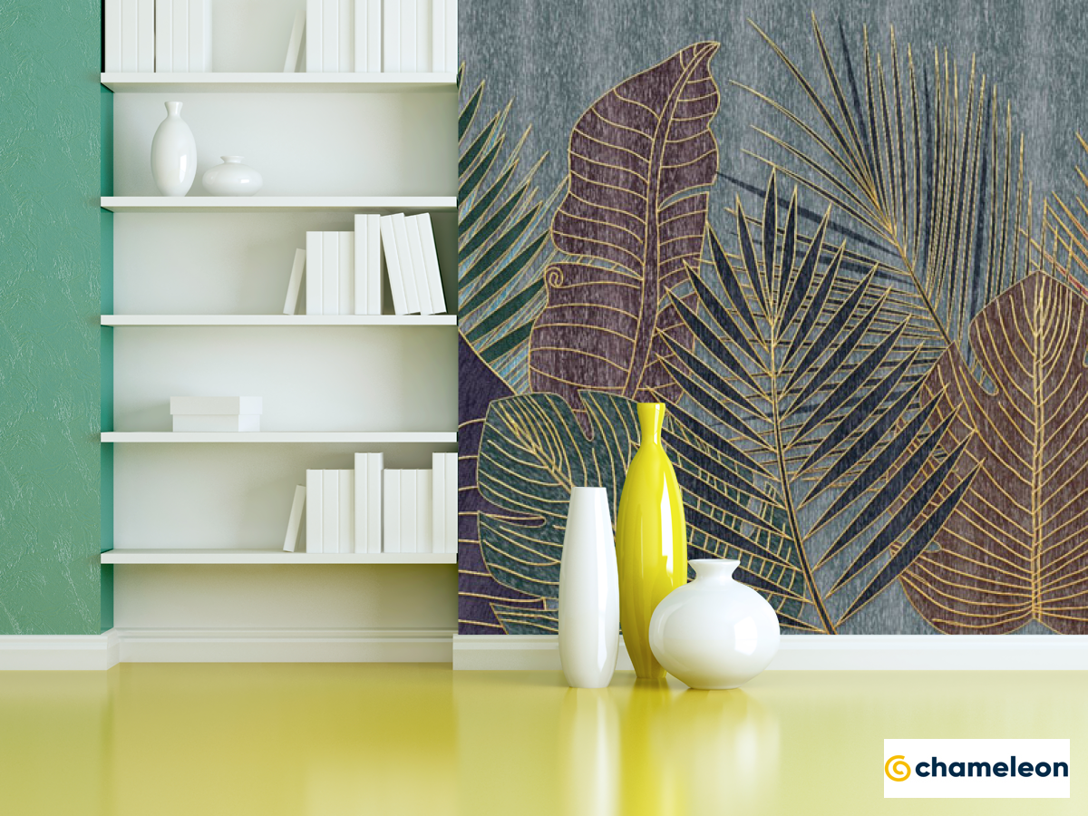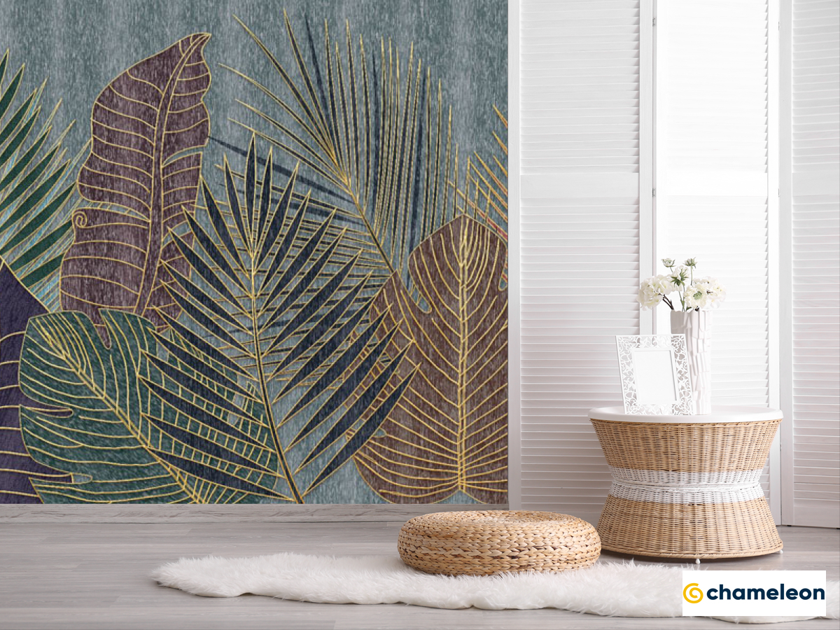 Фотошпалери «Фотошпалери 3Д тропічні листя», (арт. 34303) - купити в інтернет-магазині «Будинок Фотошпалер» Хамелеон