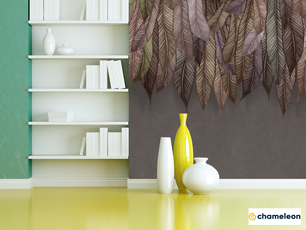 Фотошпалери «Фотошпалери 3Д листя зі стелі», (арт. 34359) - купити в інтернет-магазині «Будинок Фотошпалер» Хамелеон