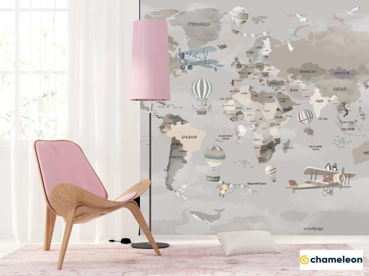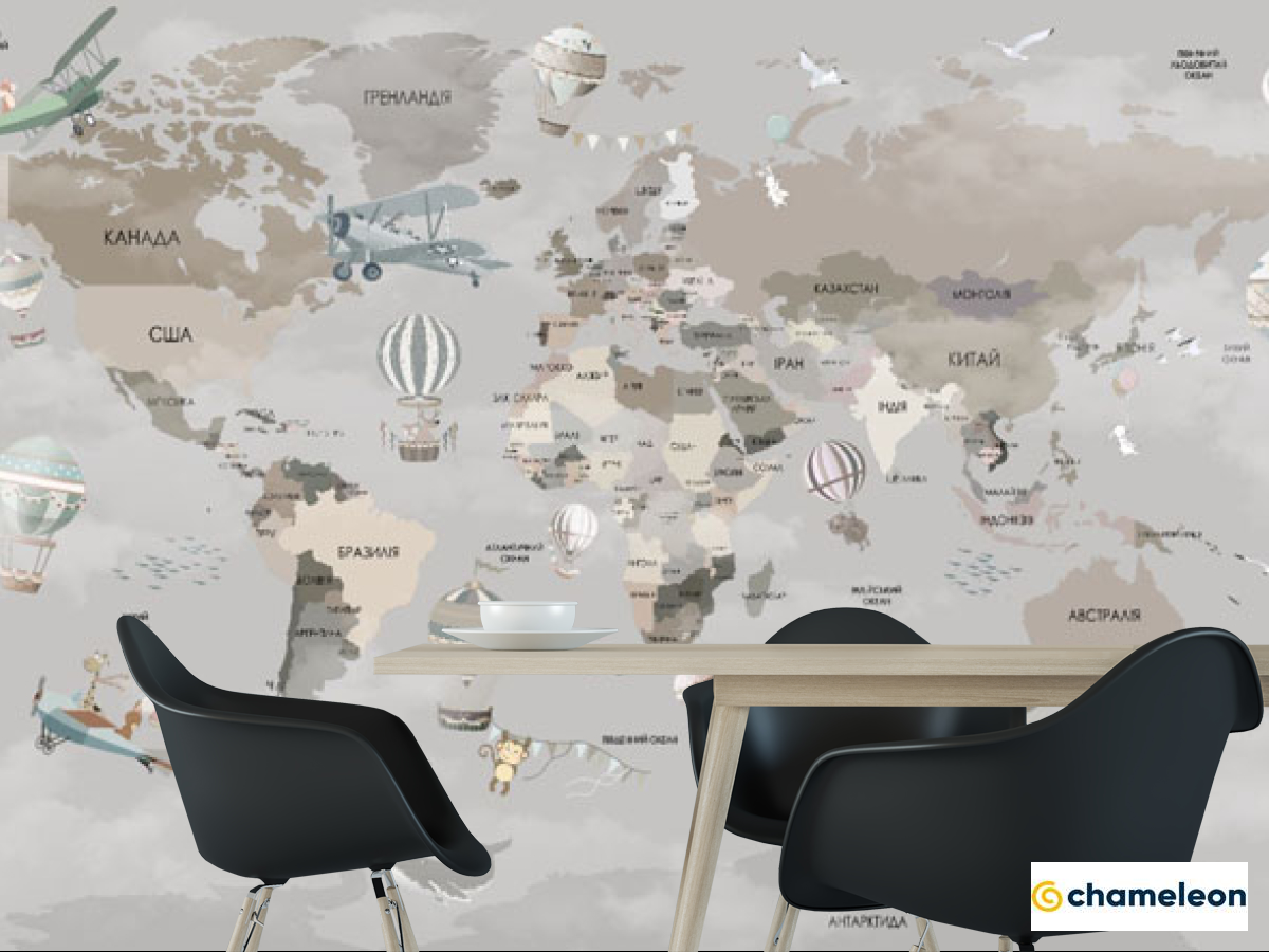 Фотошпалери «Фотошпалери сіро-бежева карта українською», (арт. 34391) - купити в інтернет-магазині «Будинок Фотошпалер» Хамелеон