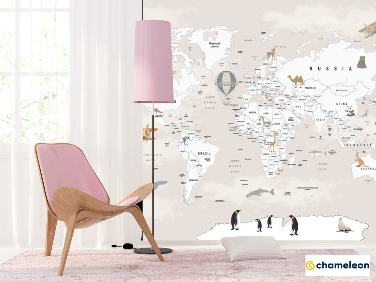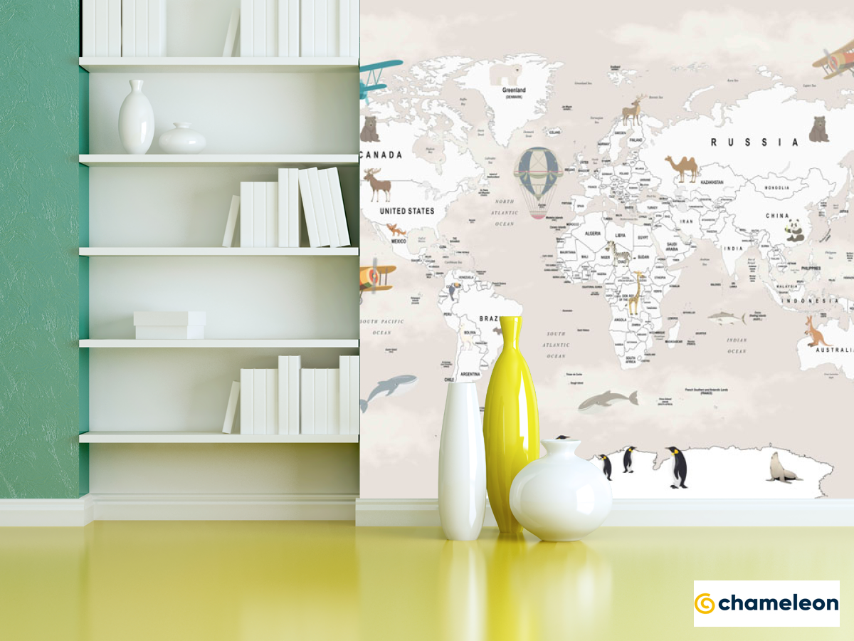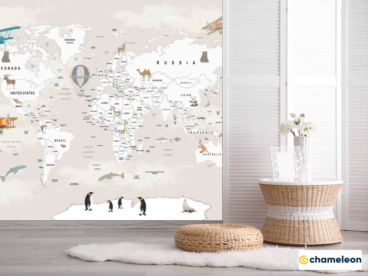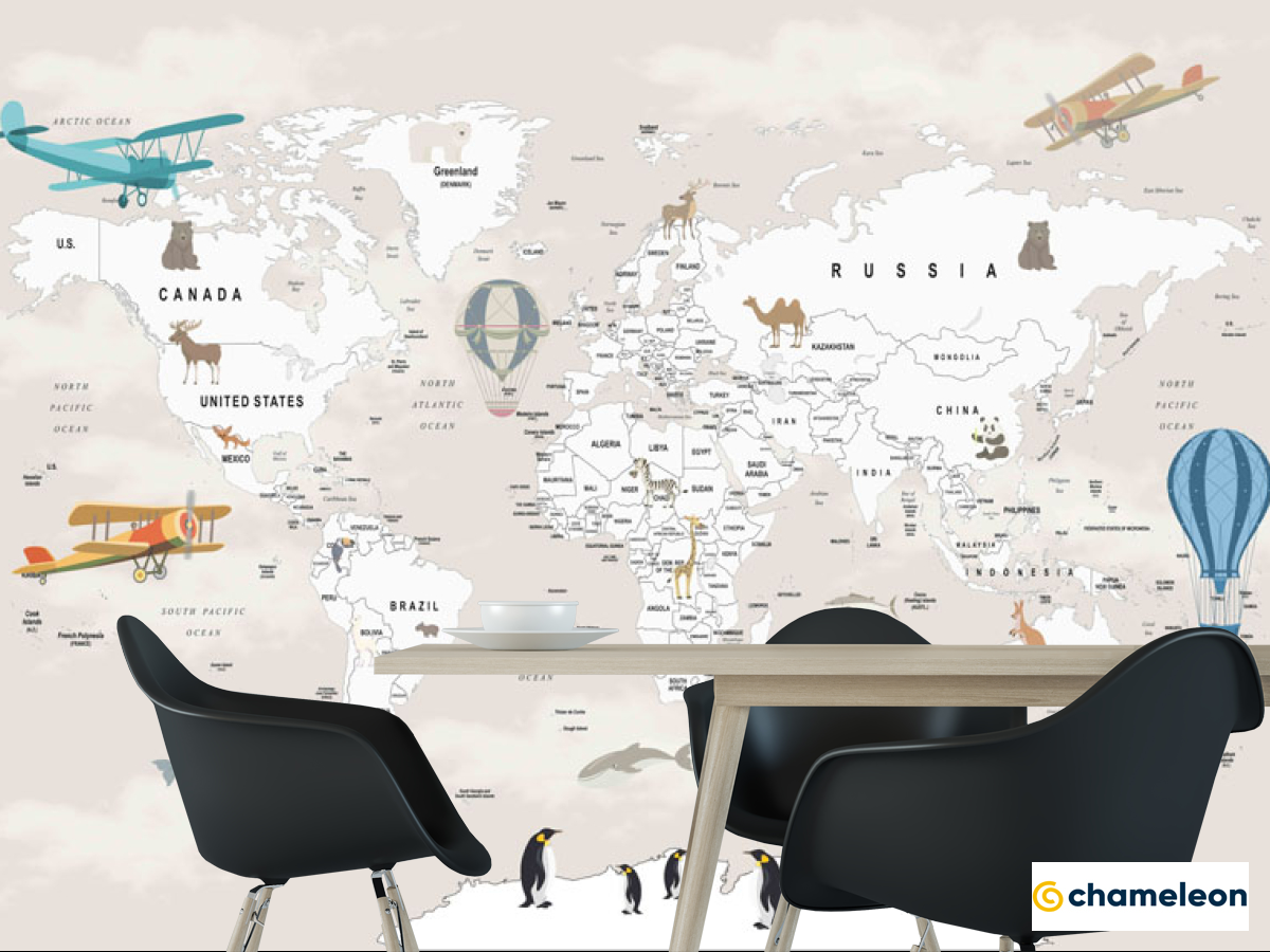 Фотошпалери «Фотошпалери Бежева карта англійською літаки і кулі», (арт. 34398) - купити в інтернет-магазині «Будинок Фотошпалер» Хамелеон