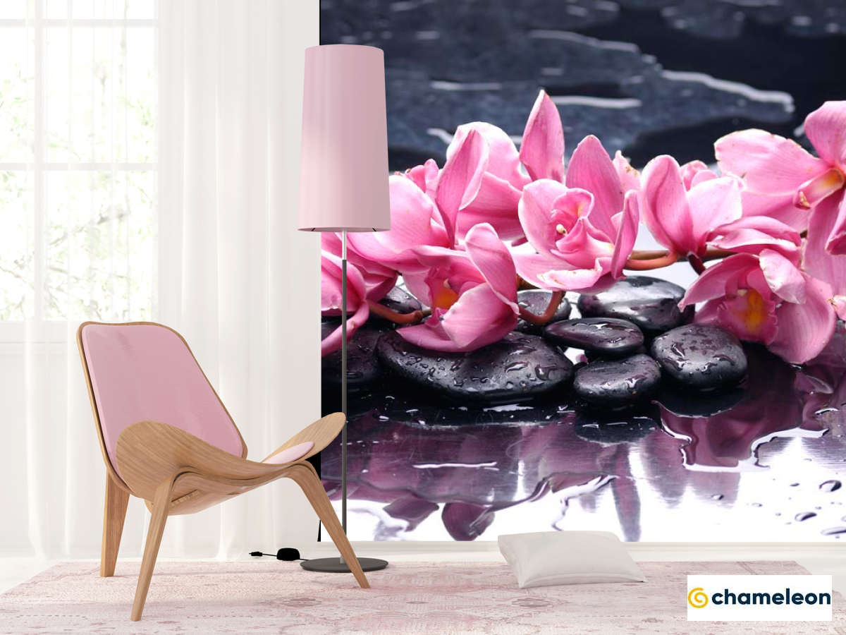 Фотошпалери Бузкові квіти і камені