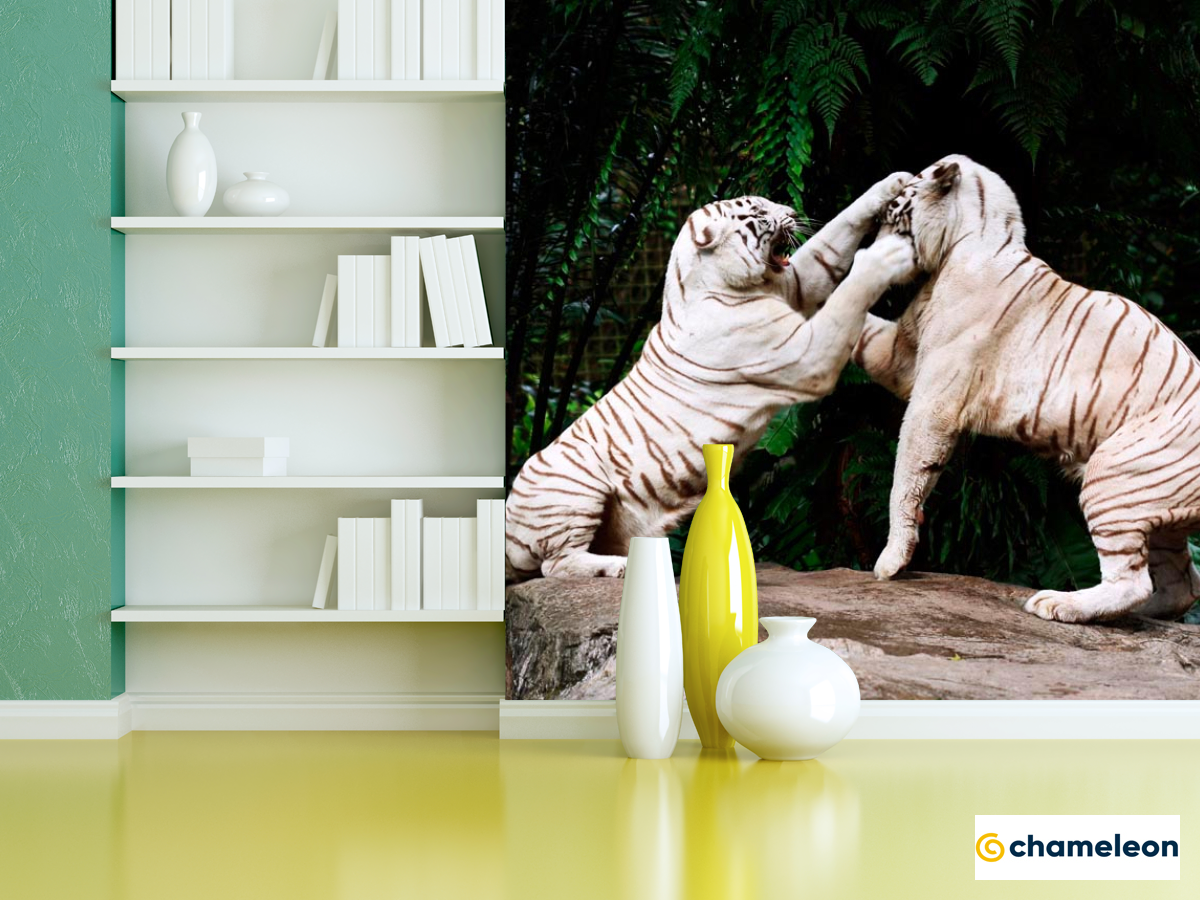 Фотошпалери «Фотошпалери Бійка білих тигрів», (арт. 9845) - купити в інтернет-магазині «Будинок Фотошпалер» Хамелеон