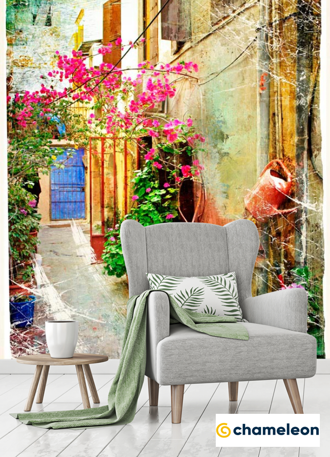 Фотообои «Фотообои Улочка с цветами», (арт. 0056) - купить в интернет-магазине Хамелеон