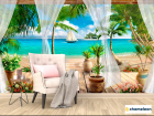 Фотообои «Фотообои Море, лодка, берег, терраса», (арт. 16271) - купить в интернет-магазине Хамелеон