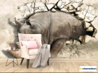 Фотообои «Фотообои носорог выходит со стены», (арт. 18134) - купить в интернет-магазине Хамелеон