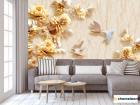 Фотообои Стеоскопические цветы и голуби