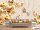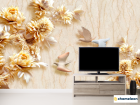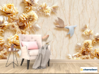 Фотообои «Фотообои Стеоскопические цветы и голуби», (арт. 18660) - купить в интернет-магазине Хамелеон