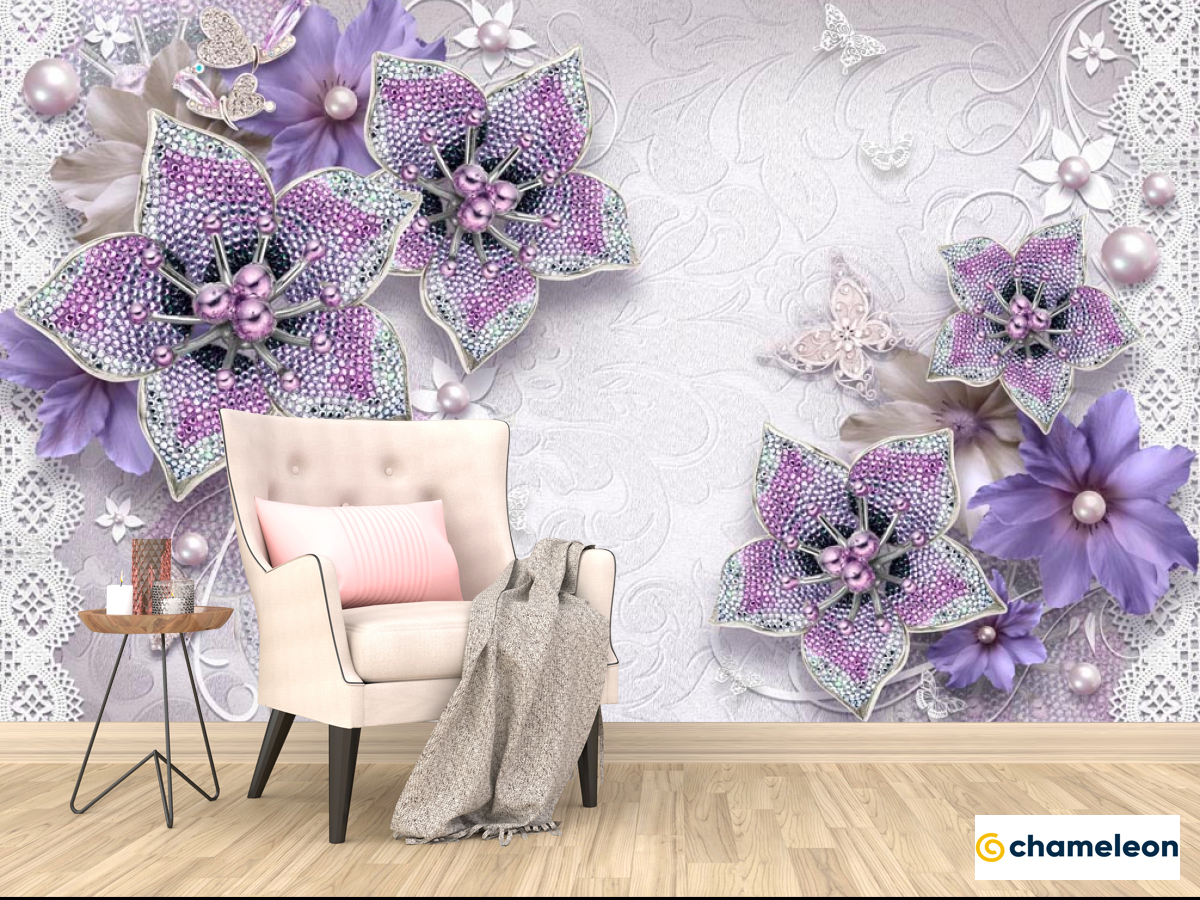 Фотообои 3d брошь+цветы