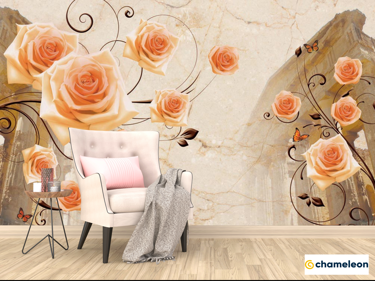 Фотообои Архитектура и розы 3д