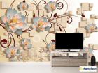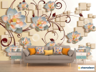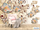 Фотообои «Фотообои Цветы 3d и квадраты», (арт. 19269) - купить в интернет-магазине Хамелеон