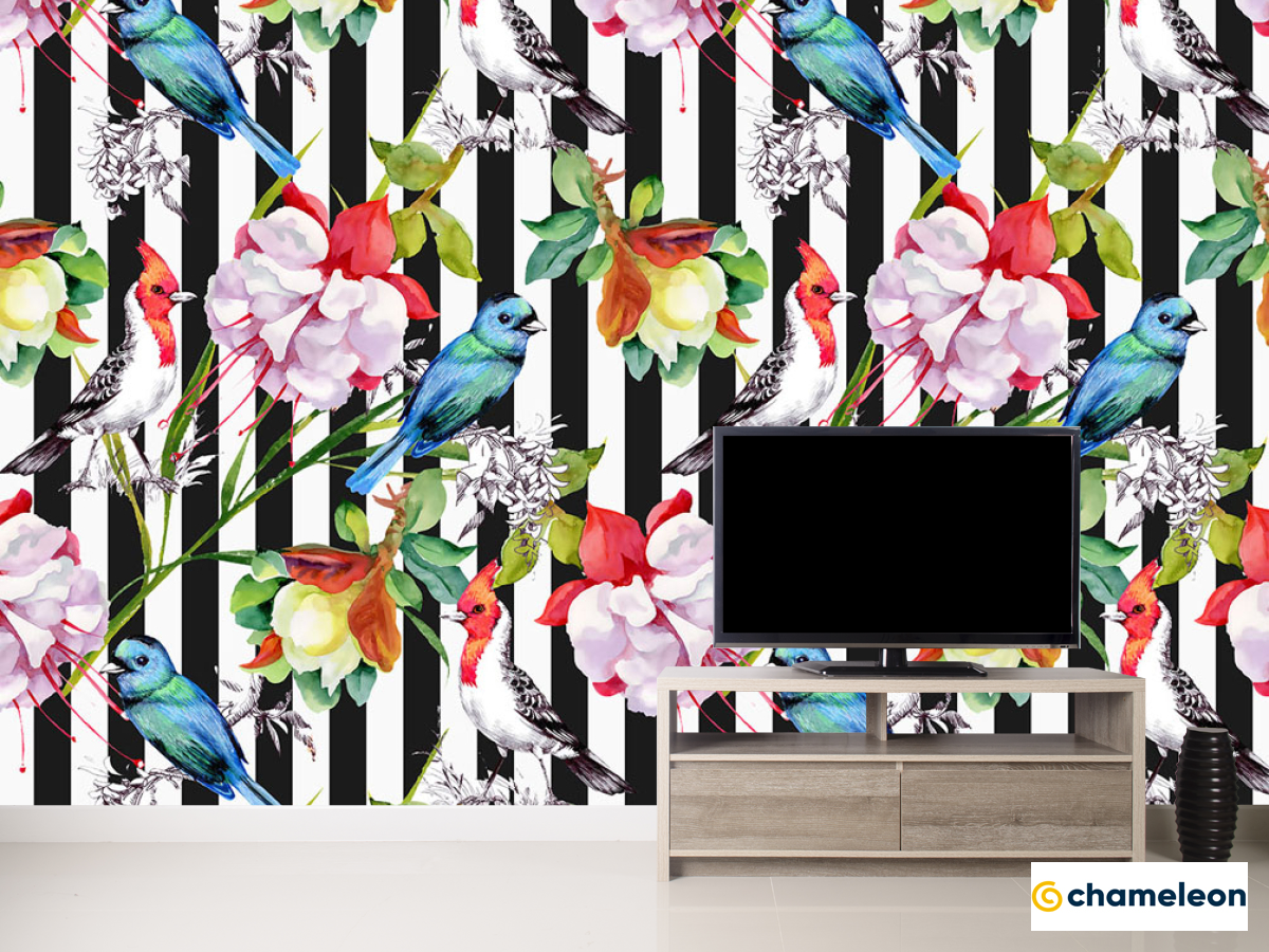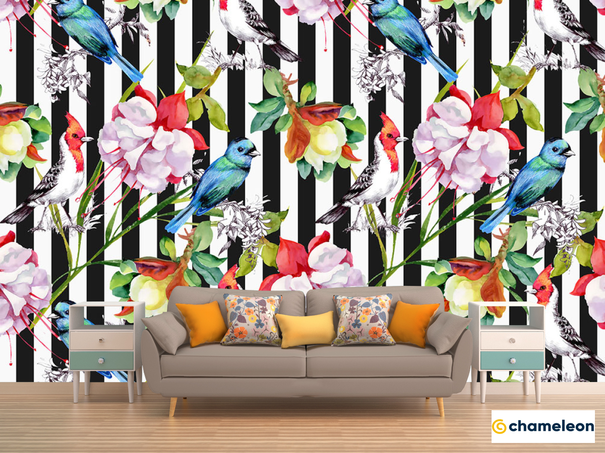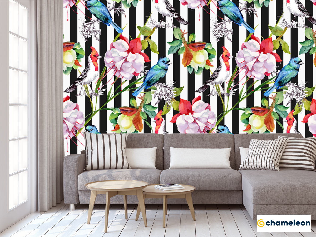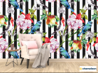 Фотообои «Фотообои Полосатая стена с цветами», (арт. 19952) - купить в интернет-магазине Хамелеон