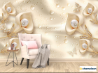 Фотообои «Фотообои Золотые 3д цветы», (арт. 20211) - купить в интернет-магазине Хамелеон