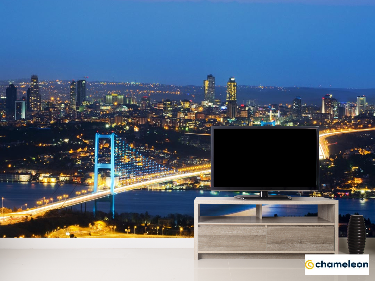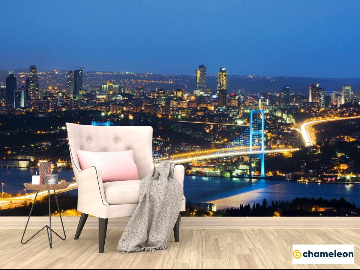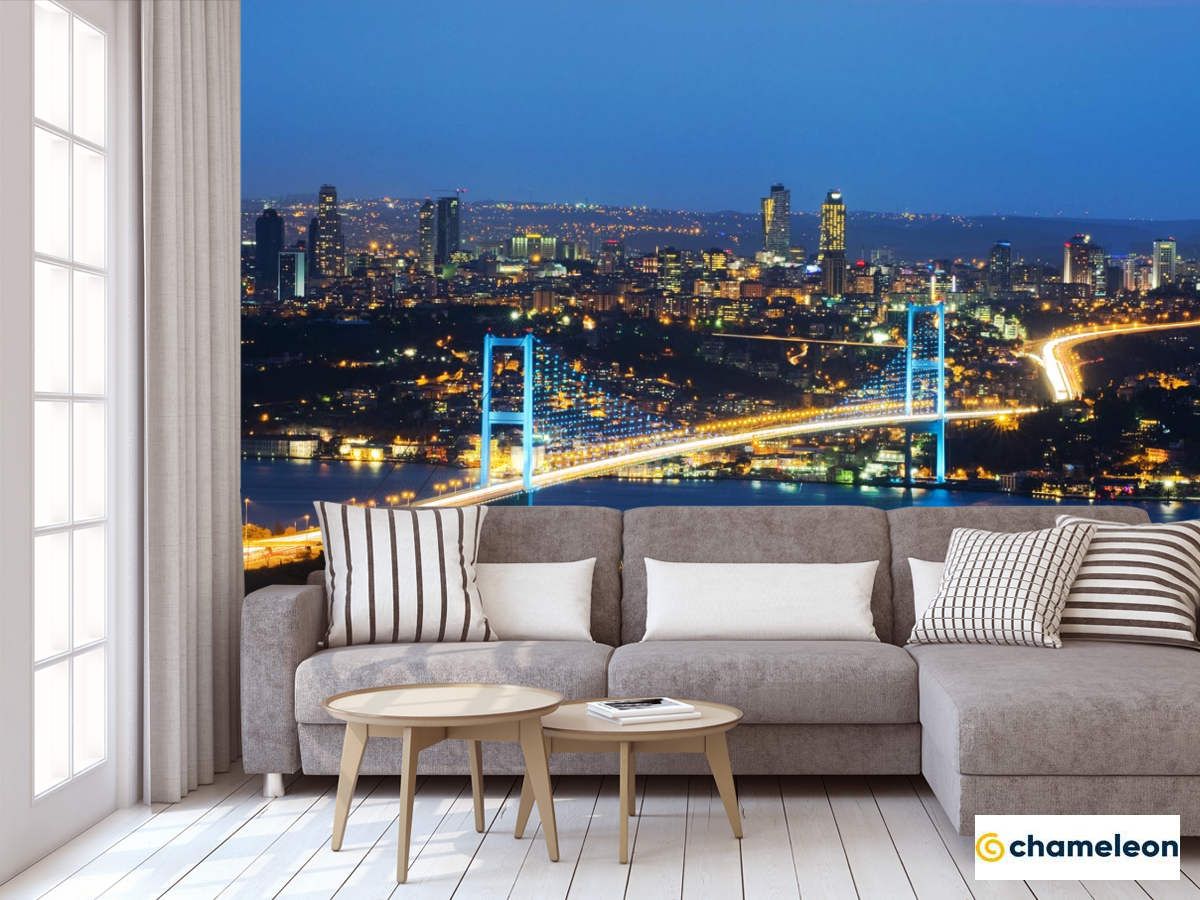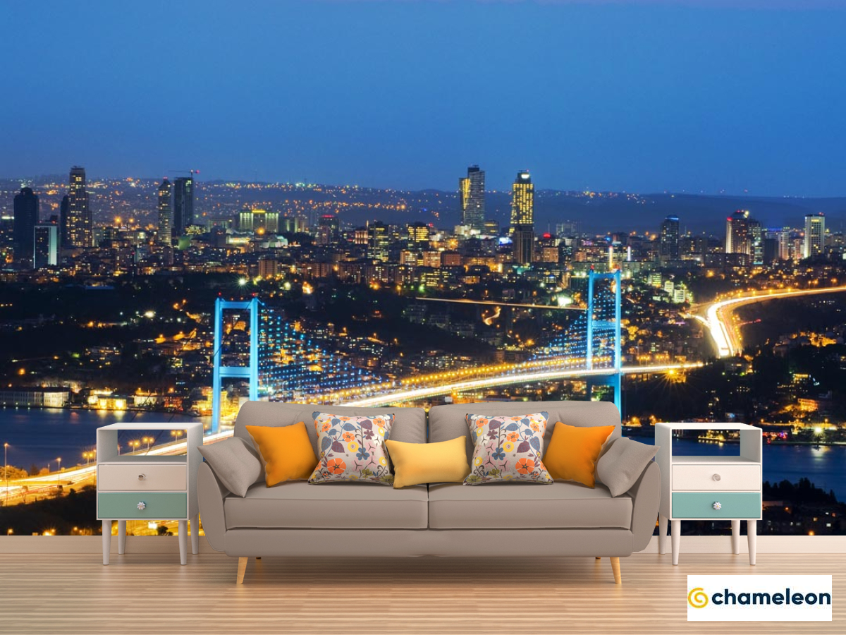 Фотообои «Фотообои мост с сине-желтыми огнями», (арт. 20561) - купить в интернет-магазине Хамелеон