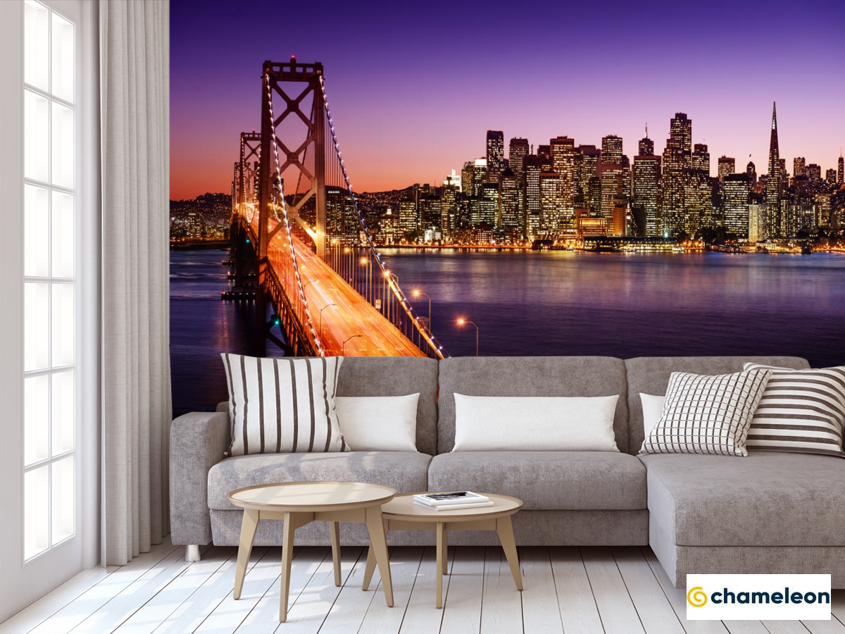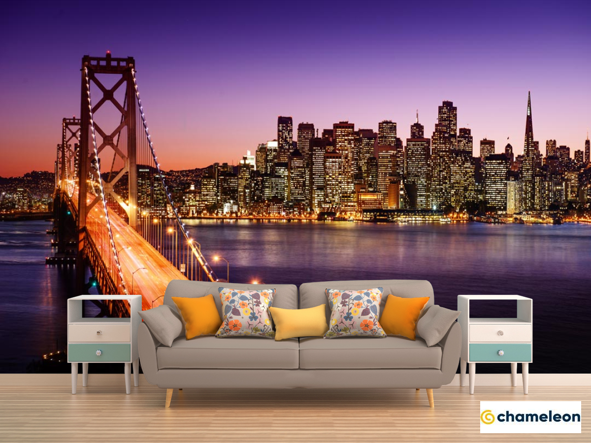 Фотообои «Фотообои мегаполис над фиолетовой рекой», (арт. 20676) - купить в интернет-магазине Хамелеон