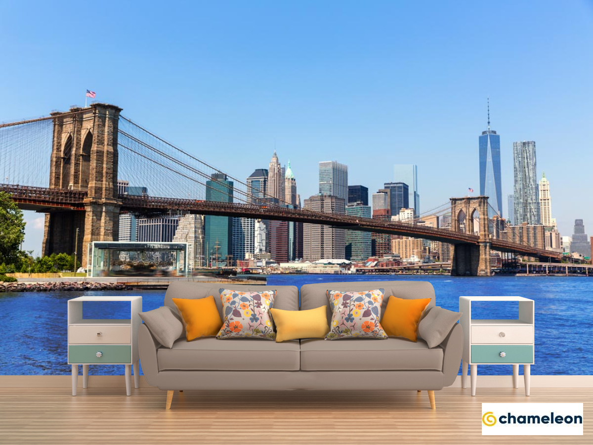 Фотообои мост в городе над синей рекой