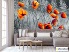 Фотообои «Фотообои красные маки на черно-белом фоне», (арт. 21015) - купить в интернет-магазине Хамелеон