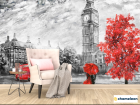 Фотообои «Фотообои Лондон красно-серая картина», (арт. 21183) - купить в интернет-магазине Хамелеон