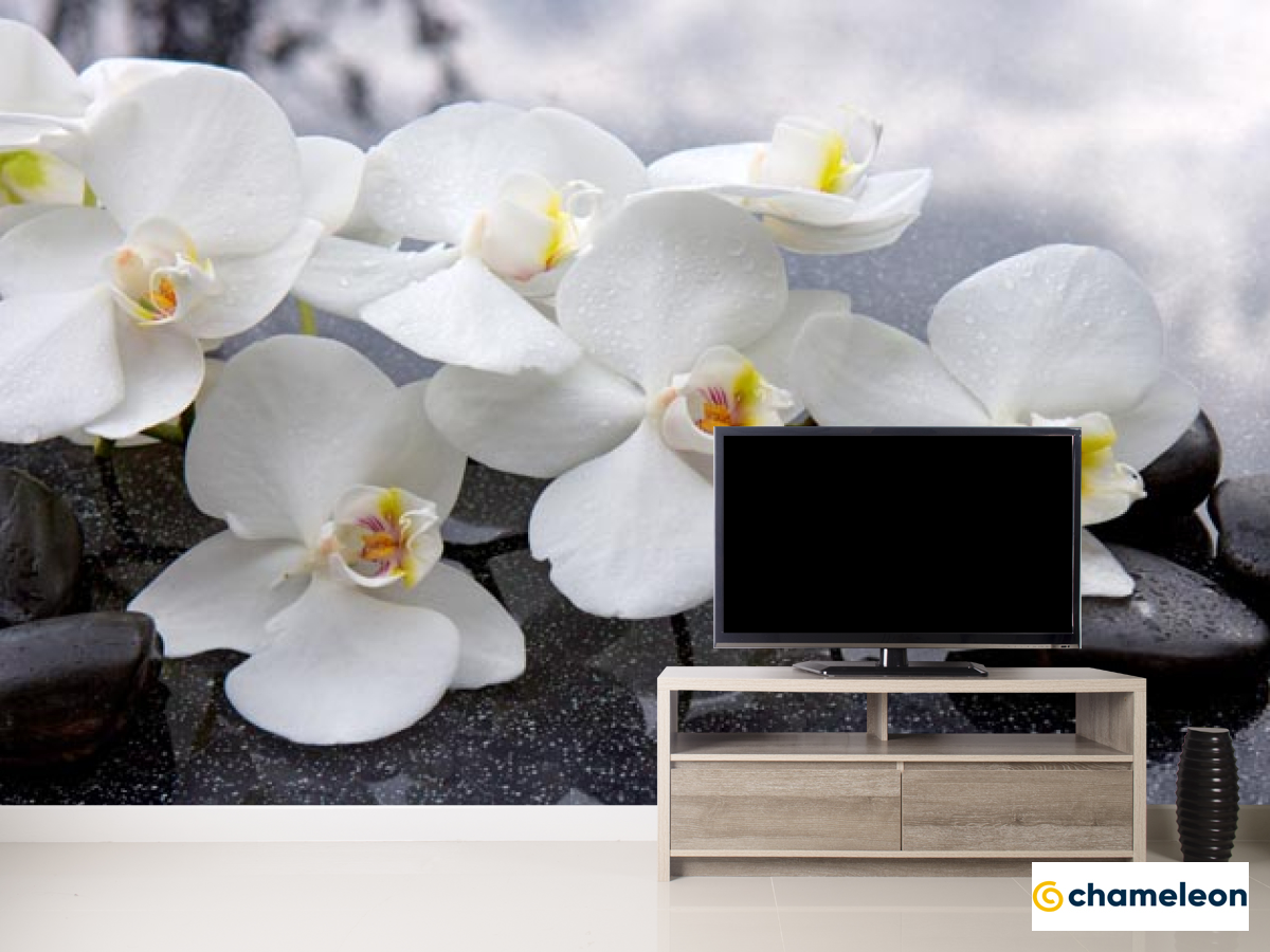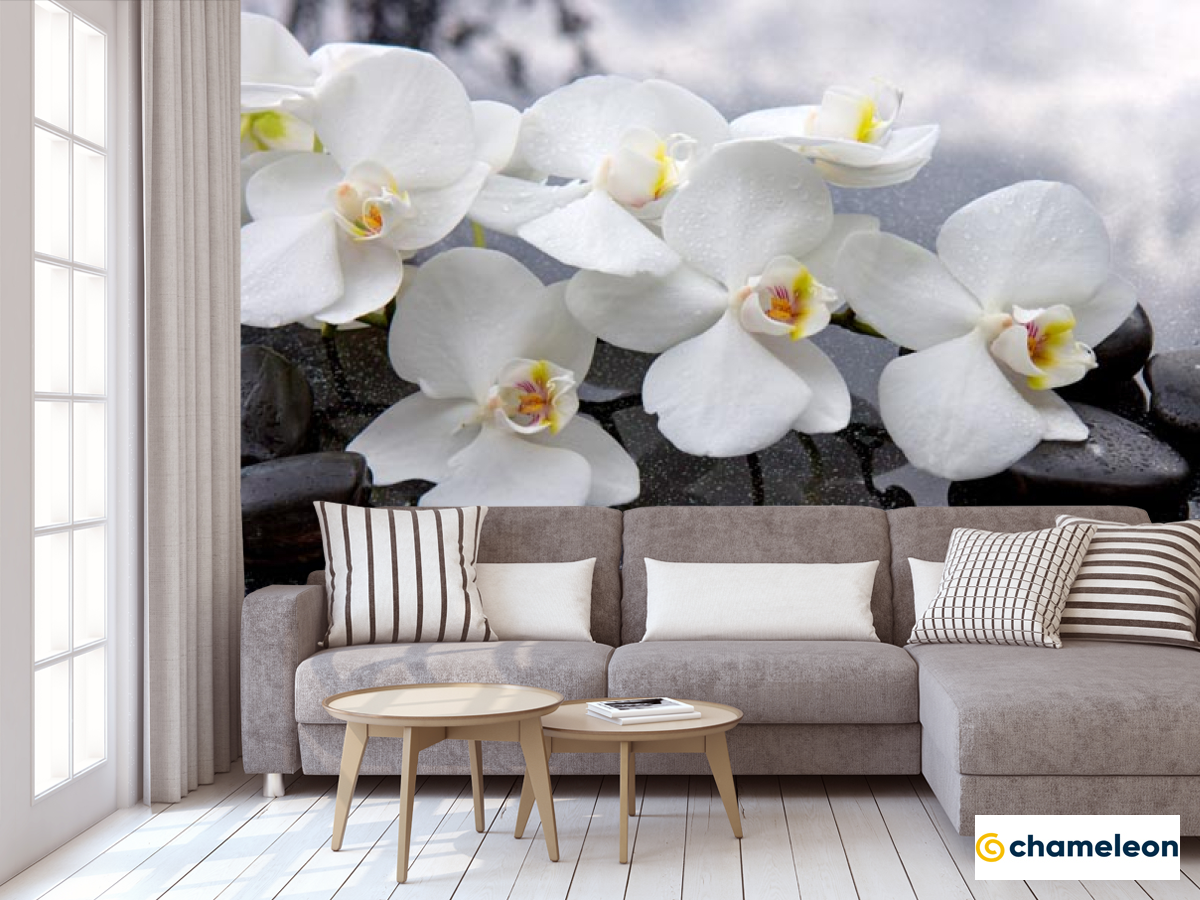 Фотообои «Фотообои белые орхидеи на черных камнях», (арт. 21320) - купить в интернет-магазине Хамелеон