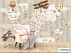 Фотообои «Фотообои Коричневые карты в детской с самолетами и шарами», (арт. 22122) - купить в интернет-магазине Хамелеон