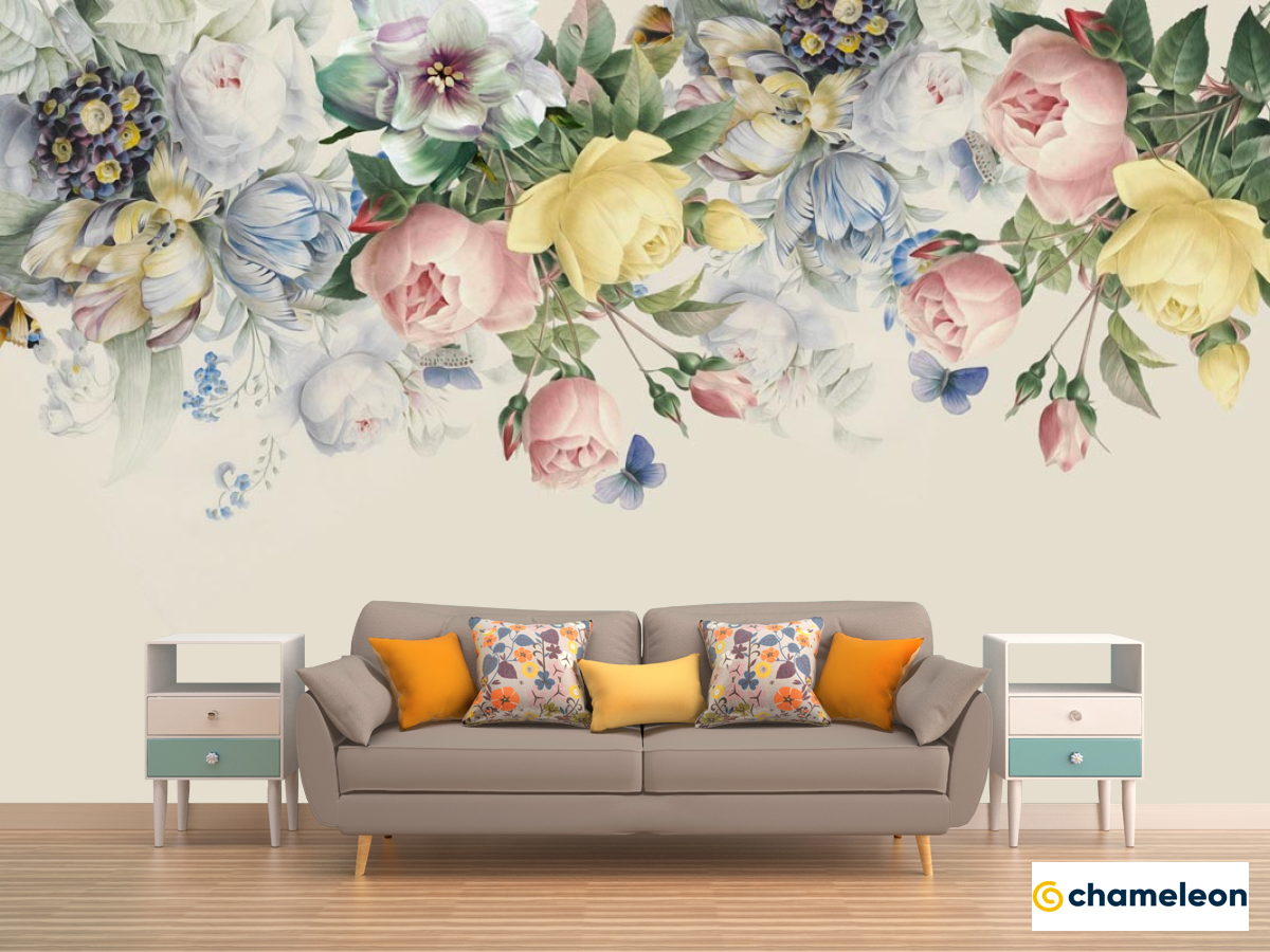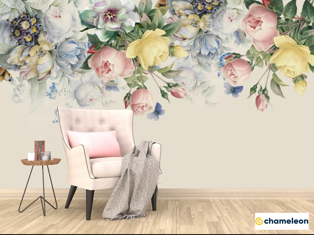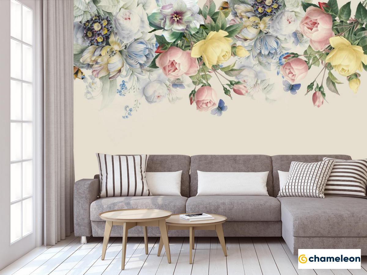 Фотообои «Фотообои Нежные винтажные цветы с потолка», (арт. 22173) - купить в интернет-магазине Хамелеон