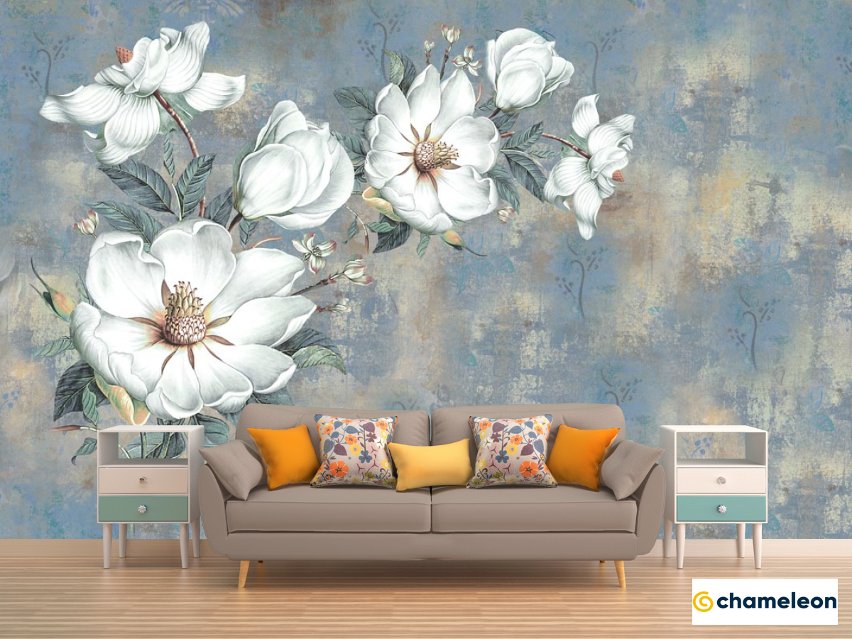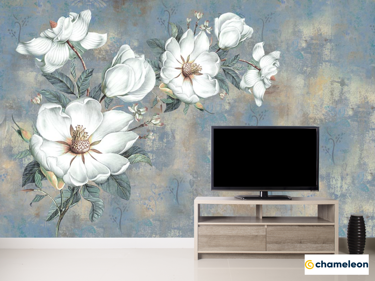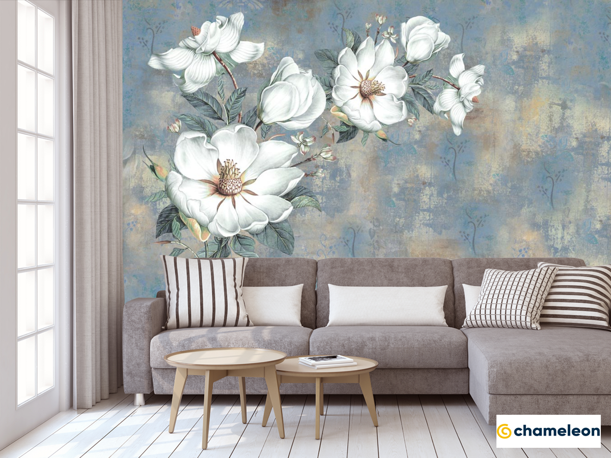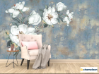 Фотообои «Фотообои Белые цветы на голубом фоне», (арт. 22180) - купить в интернет-магазине Хамелеон
