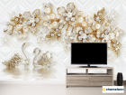 Фотообои «Фотообои Золотые цветы с лебедями», (арт. 22332) - купить в интернет-магазине Хамелеон