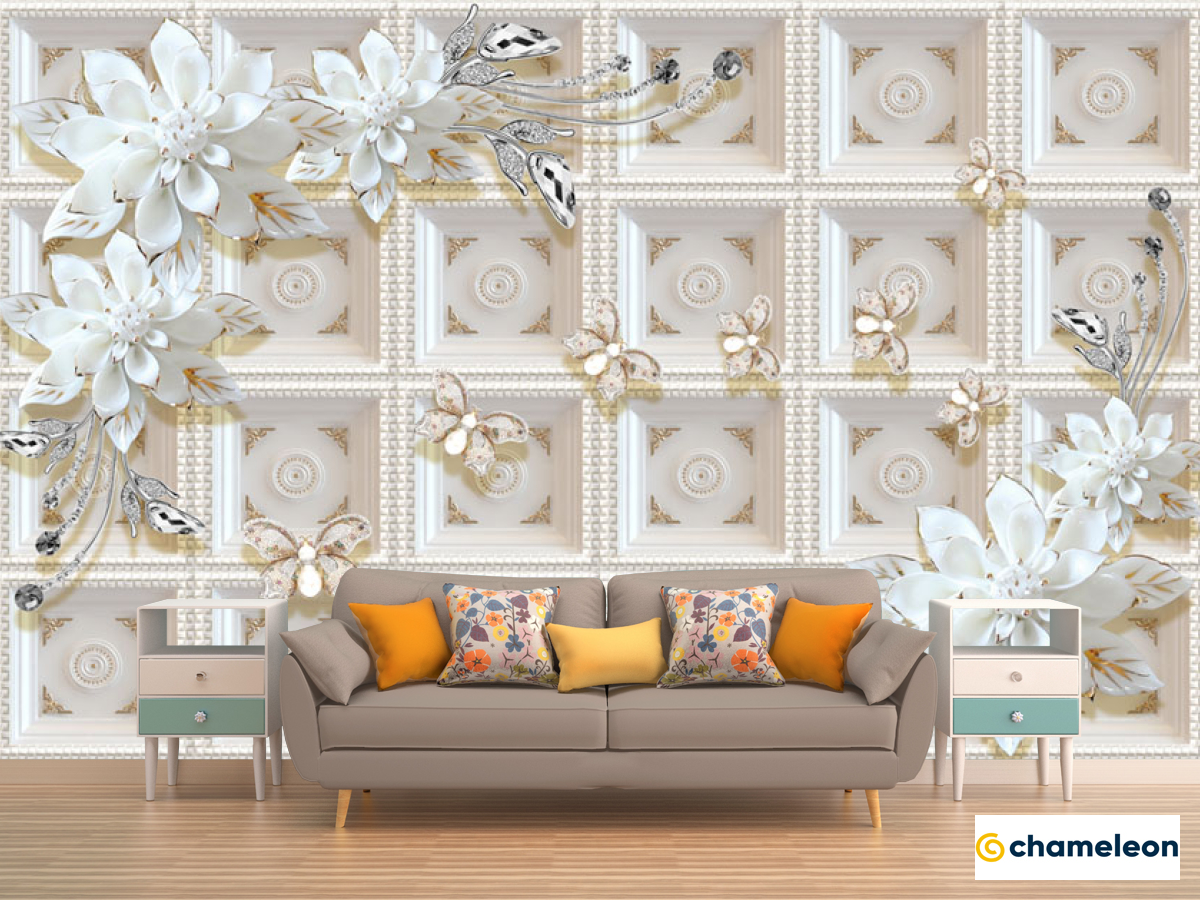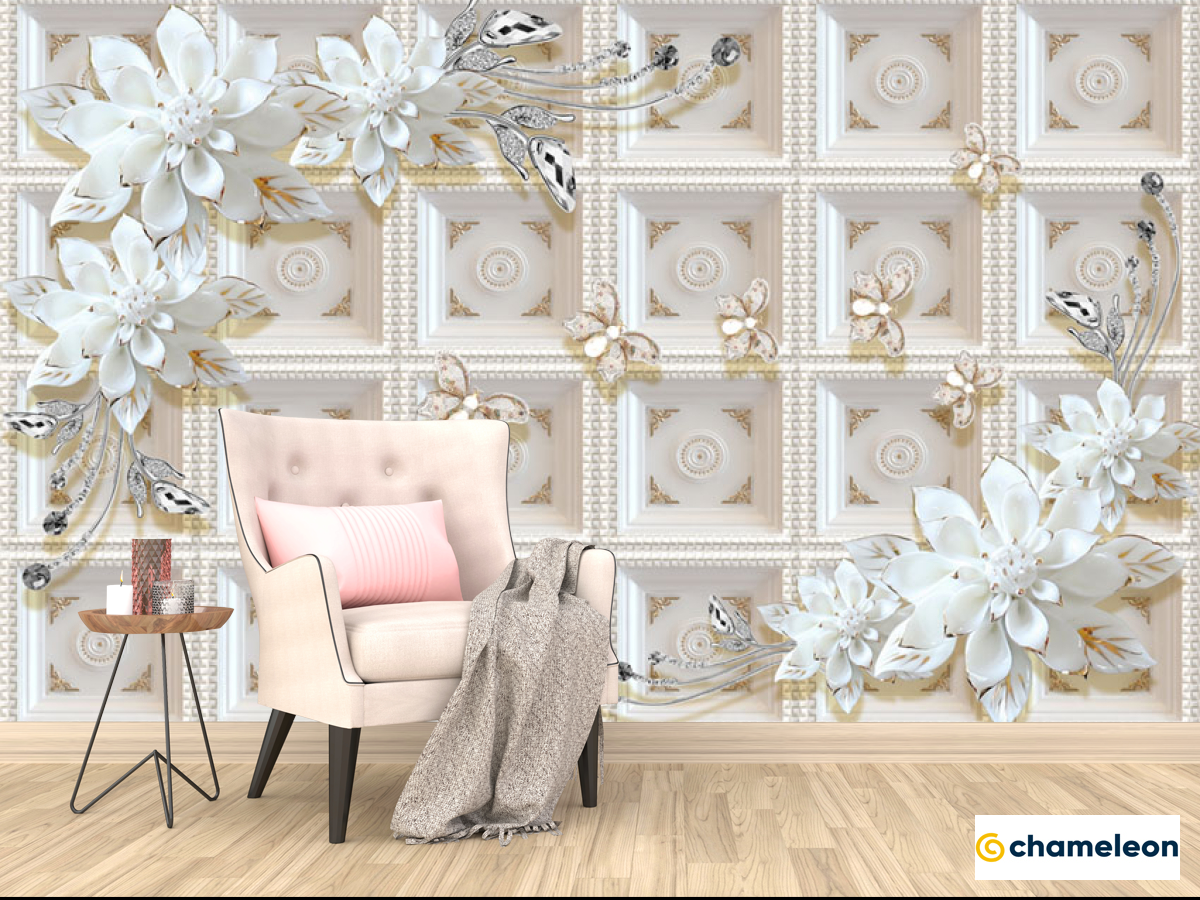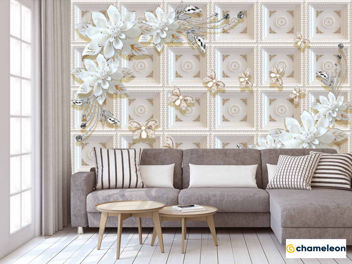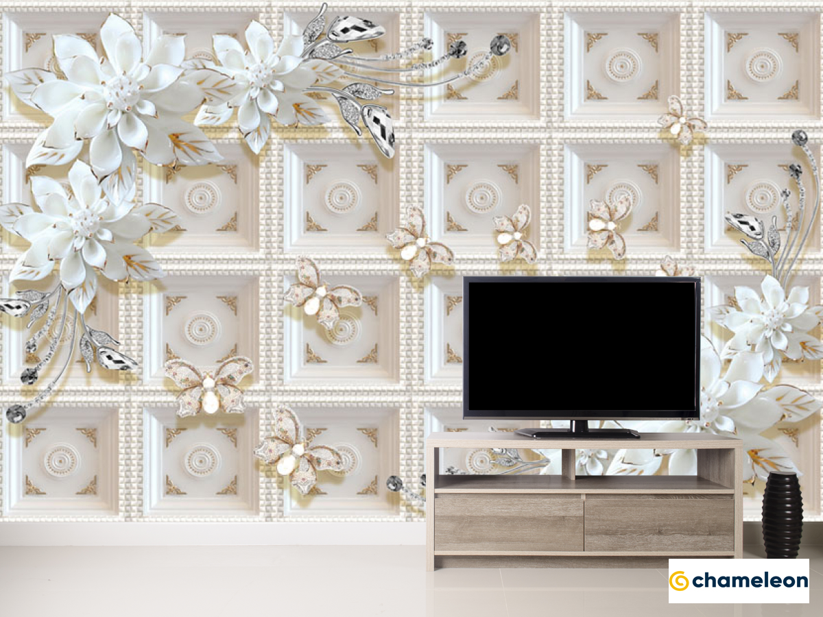 Фотообои «Фотообои Керамические цветы на фоне золотой стены», (арт. 22570) - купить в интернет-магазине Хамелеон