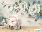 Фотообои «Фотообои Цветы на бирюзовом фоне», (арт. 22919) - купить в интернет-магазине Хамелеон