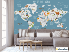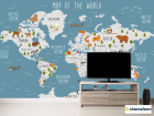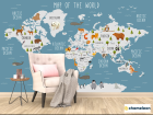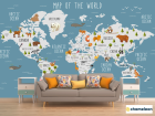 Фотообои Карта в бирюзовом оттенке для комнаты мальчика на английском