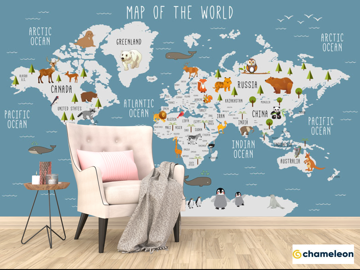 Фотообои «Фотообои Карта в бирюзовом оттенке для комнаты мальчика на английском», (арт. 23012) - купить в интернет-магазине Хамелеон