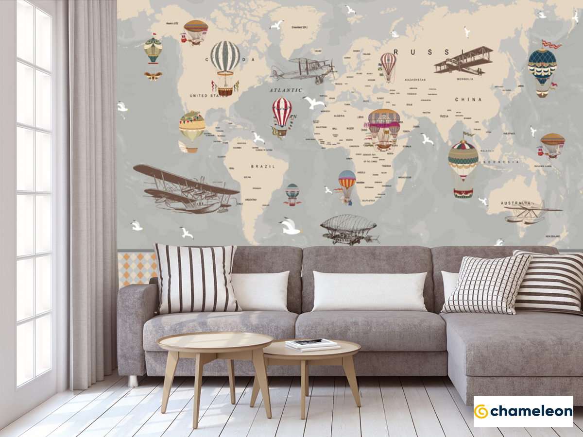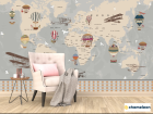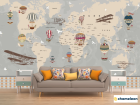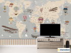 Фотообои «Фотообои Карта детская с самолетами и слоями по английски», (арт. 23024_1) - купить в интернет-магазине Хамелеон