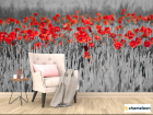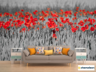 Фотообои «Фотообои Красные маки на чб фоне», (арт. 23095) - купить в интернет-магазине Хамелеон