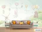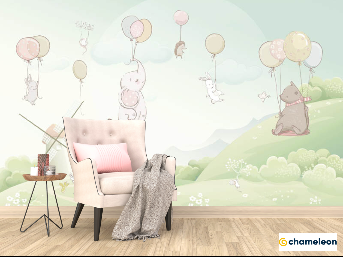 Фотообои «Фотообои животные на воздушных шариках», (арт. 23760) - купить в интернет-магазине Хамелеон