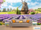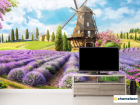 Фотообои Фреска с мельницей и лавандой